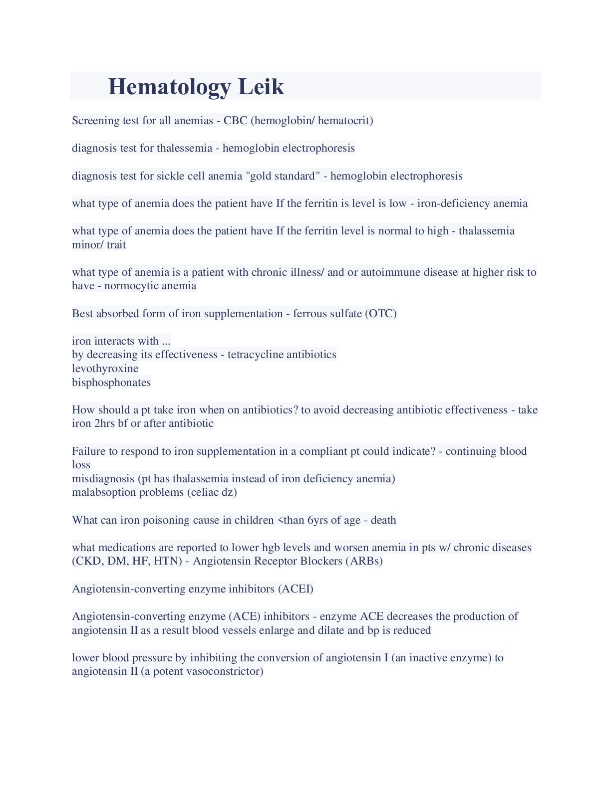 Health Care> EXAM > Hematology Leik exam Practice With complete solution (All)