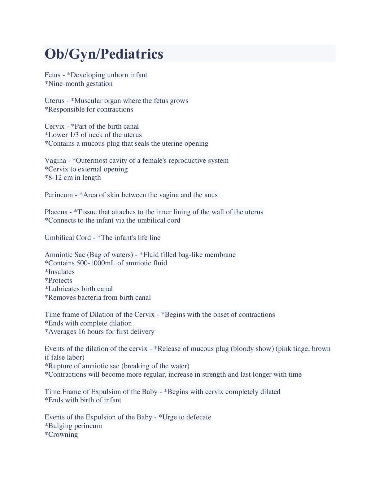 Health Care> EXAM > Paramedic Unit Exam: Obstetrics, Gynecology, and Pediatrics (All)