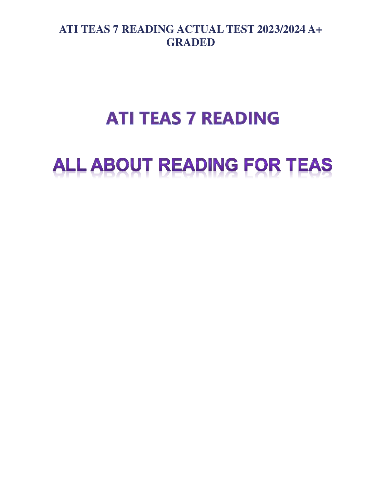 ATI TEAS 7 READING ACTUAL TEST 2023-2024 A+ GRADED