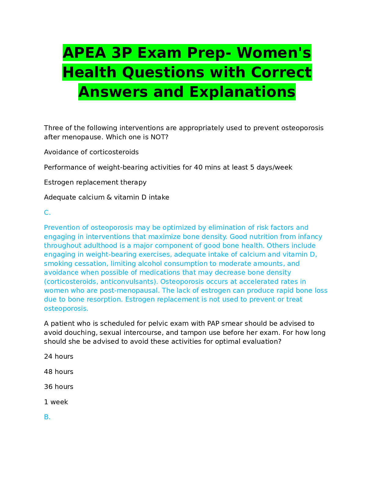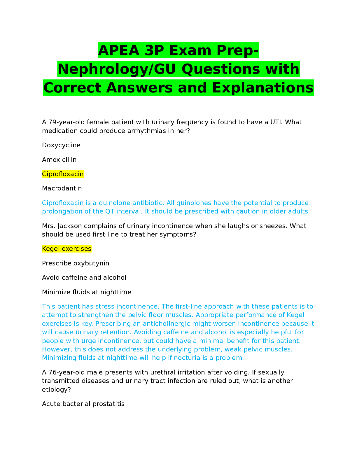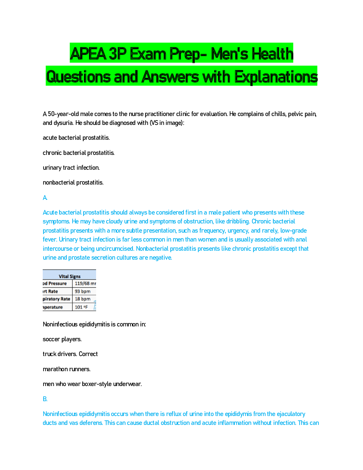 APEA 3P Exam Prep Mens Health Questions and Answers with Explanations
