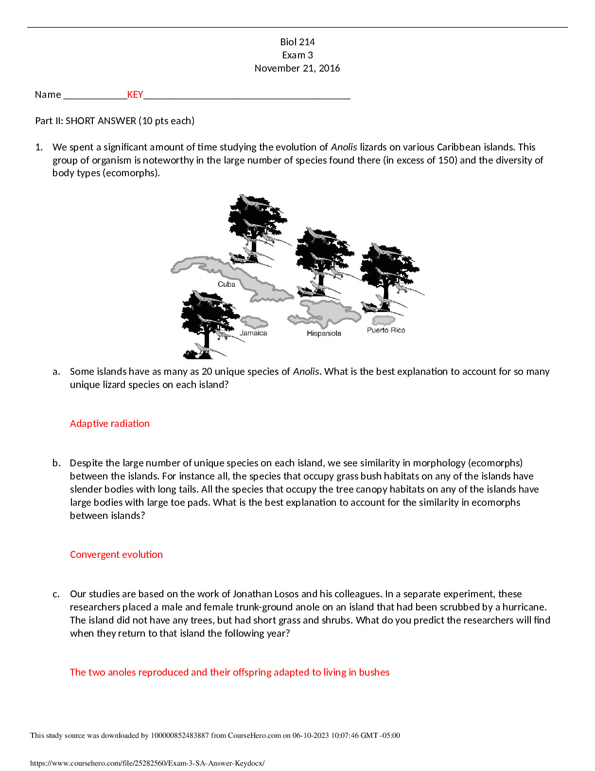 Biology> QUESTIONS & ANSWERS > BIOL 214 Genes and Evolution Exam 3 Answer key. question and answers 100% Correct (All)