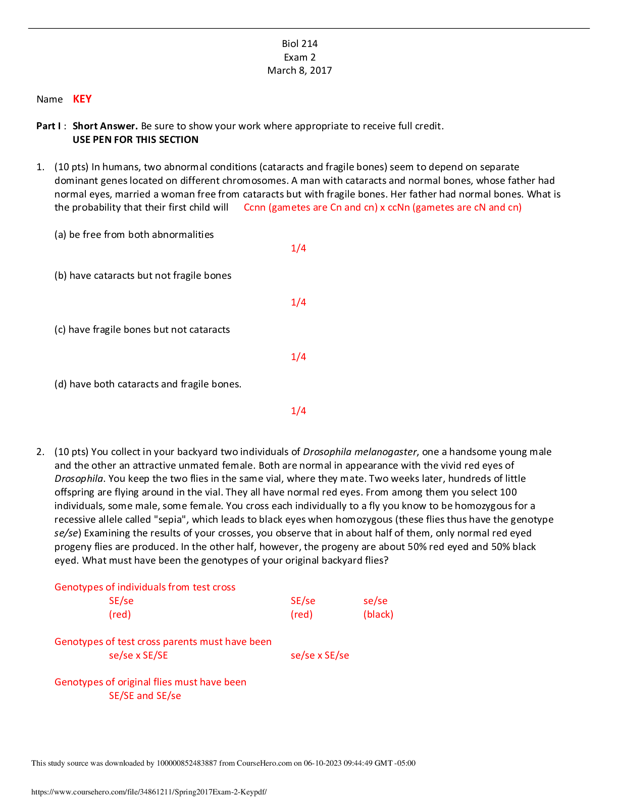 BIOL 214 Genes and Evolution Exam 2 Answer key, 100% Correct (Spring)