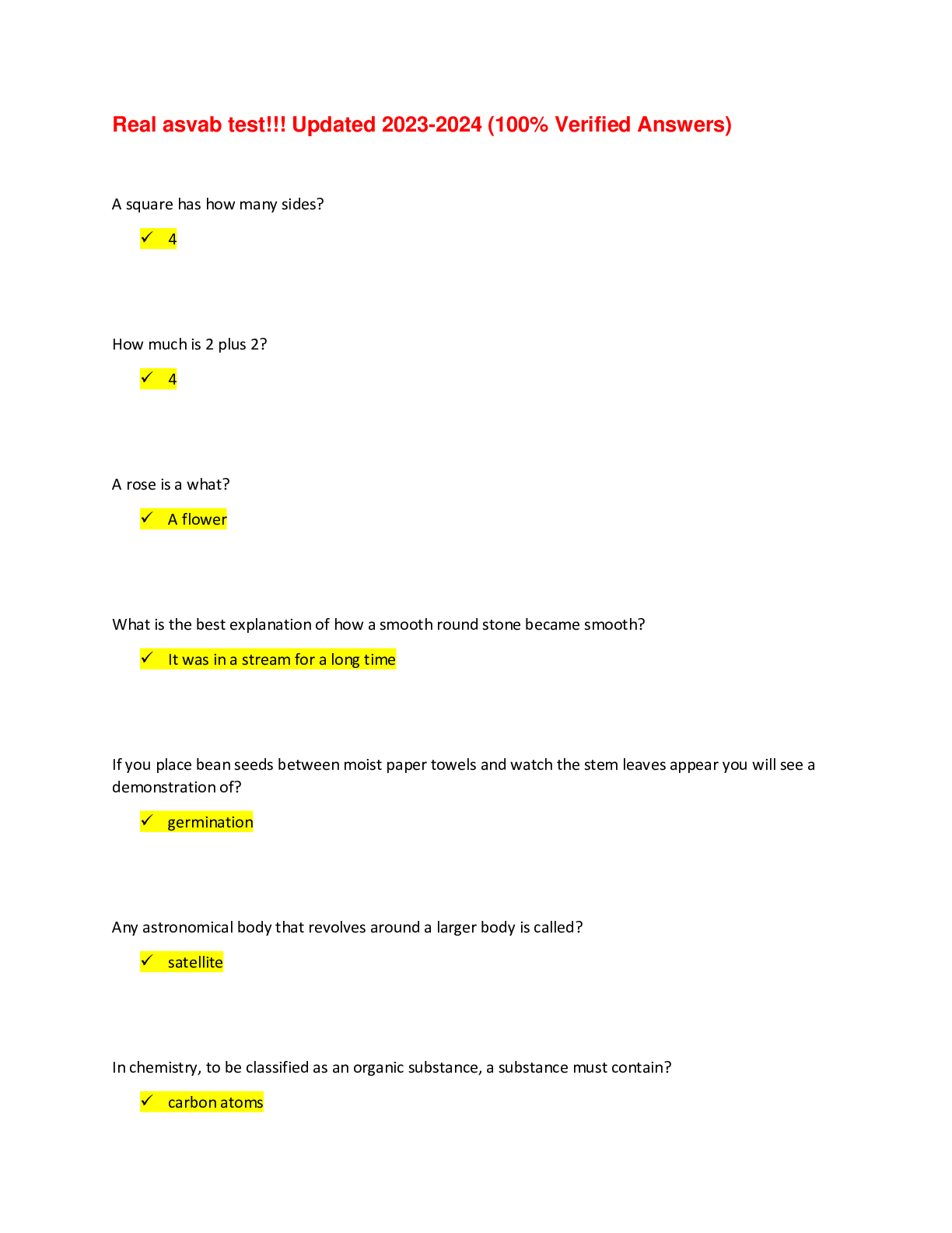 SECURITY> EXAM > Real asvab test!!! Updated 2023-2024 (100% Verified Answers) (All)