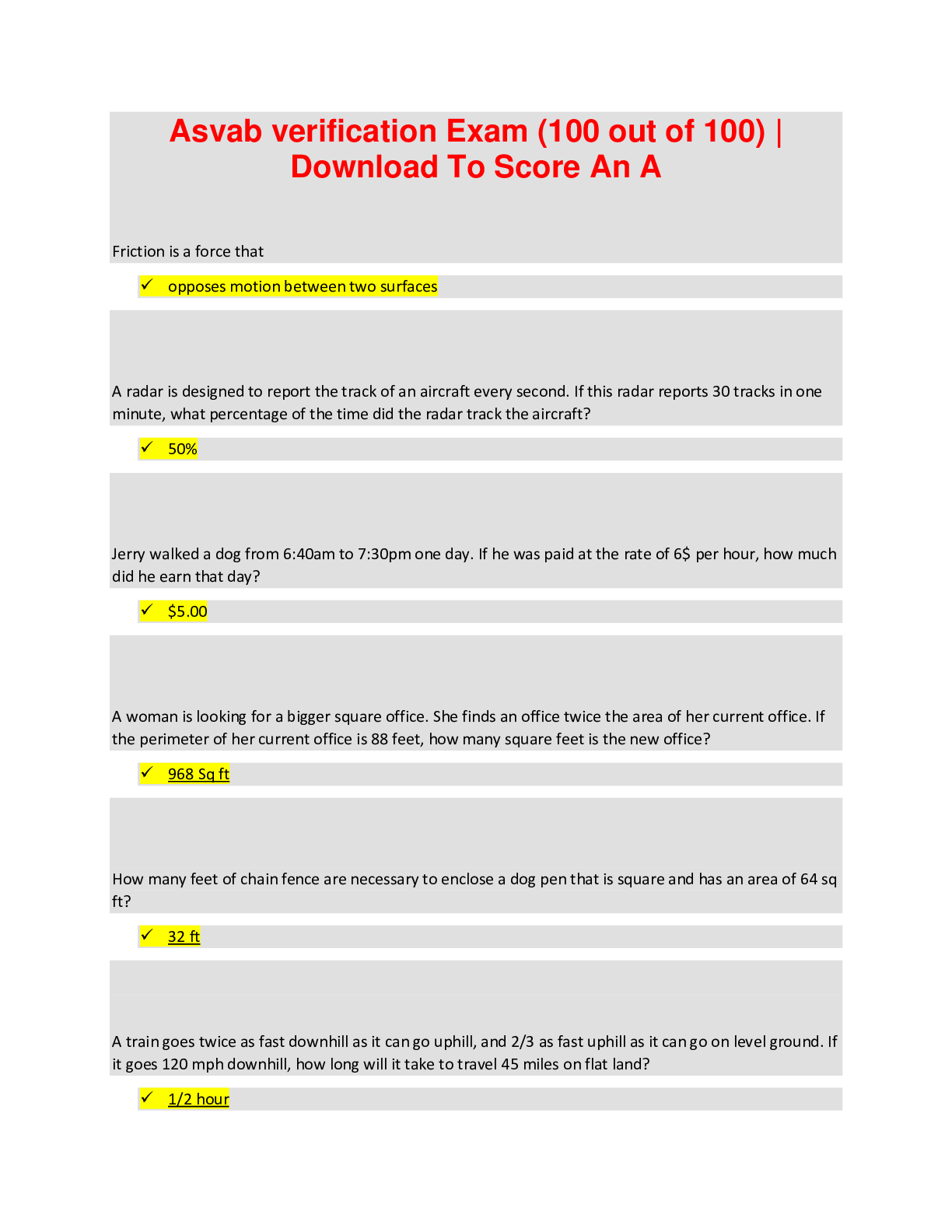 Asvab verification Exam (100 out of 100) | Download To Score An A
