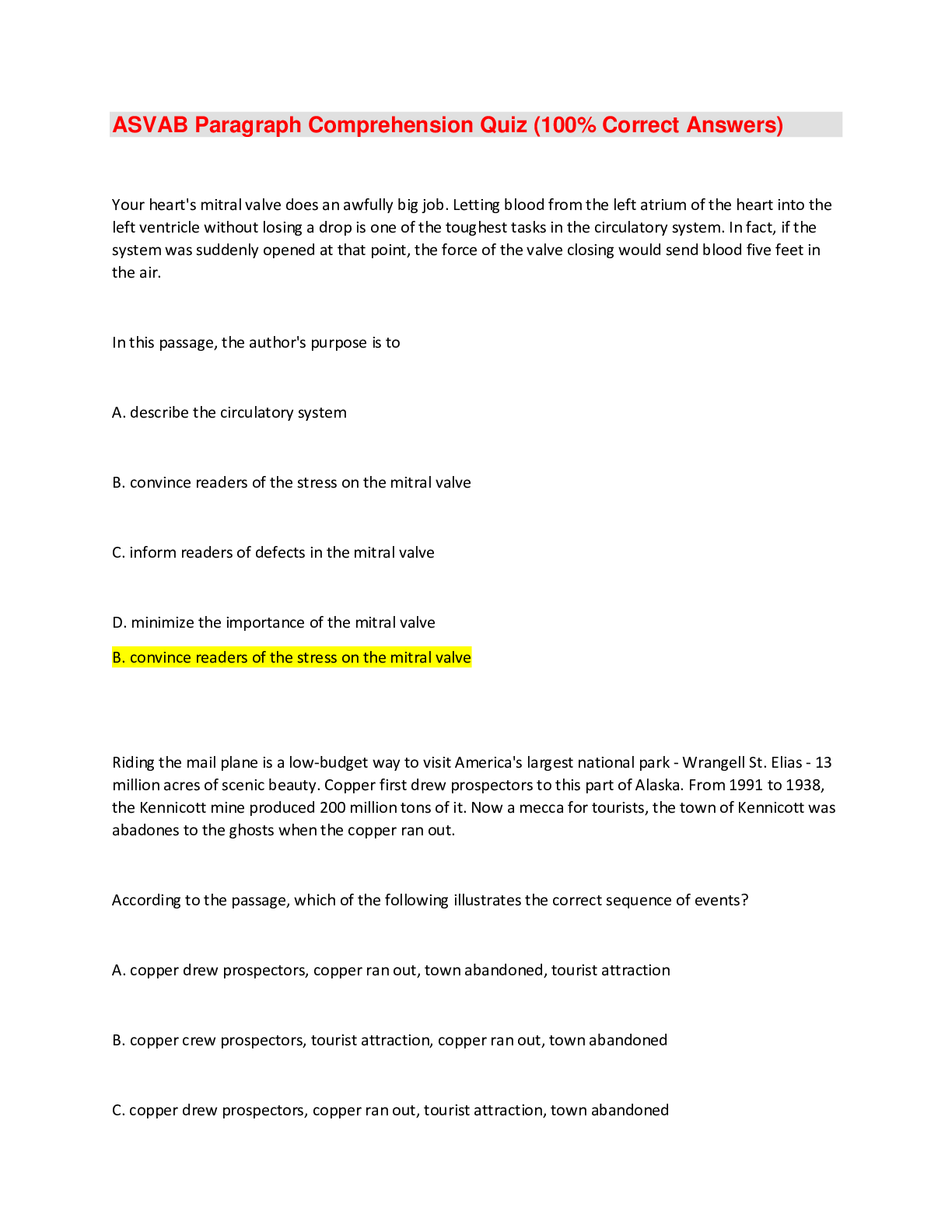 ASVAB Paragraph Comprehension Quiz (100% Correct Answers)