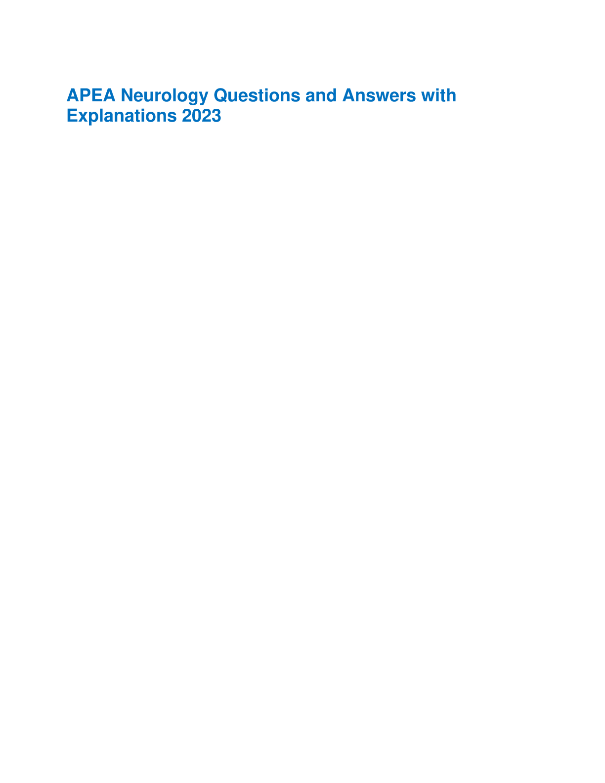 Bundle: APEA EXAMS|APEA Neurology |APEA Ortho Test| Questions and Answers with Explanations 2023.... [Show More]
