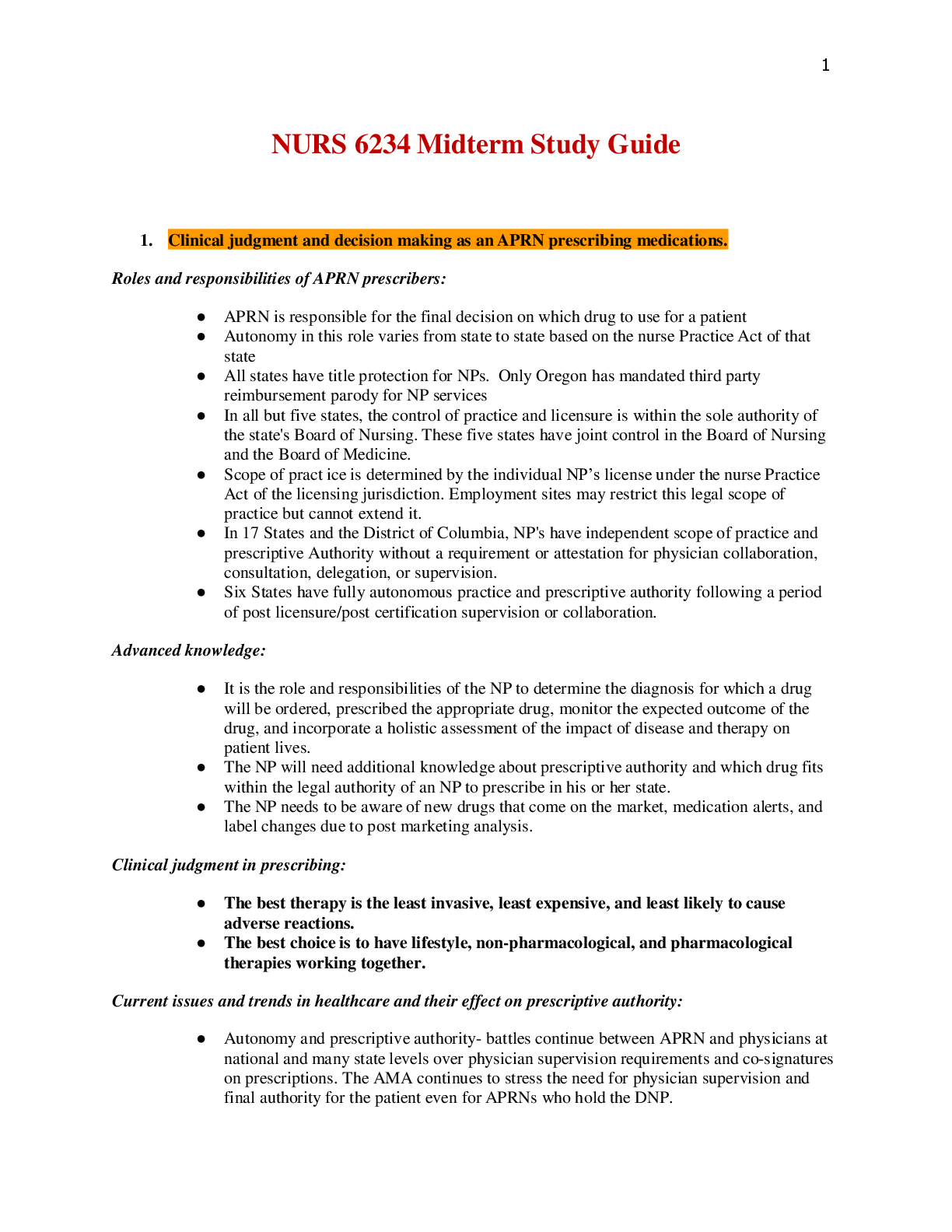 NURS 6234 Pharmacology for Nursing | NURS 6234 Midterm Study Guide