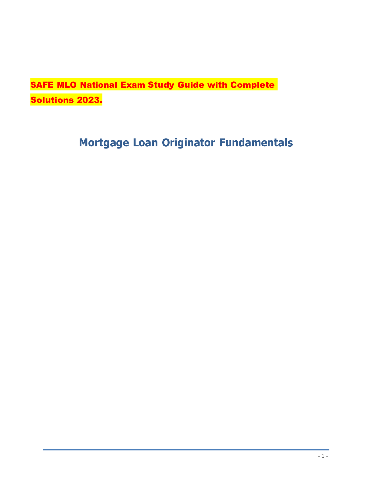 SAFE MLO National Exam Study Guide with Complete Solutions 2023.