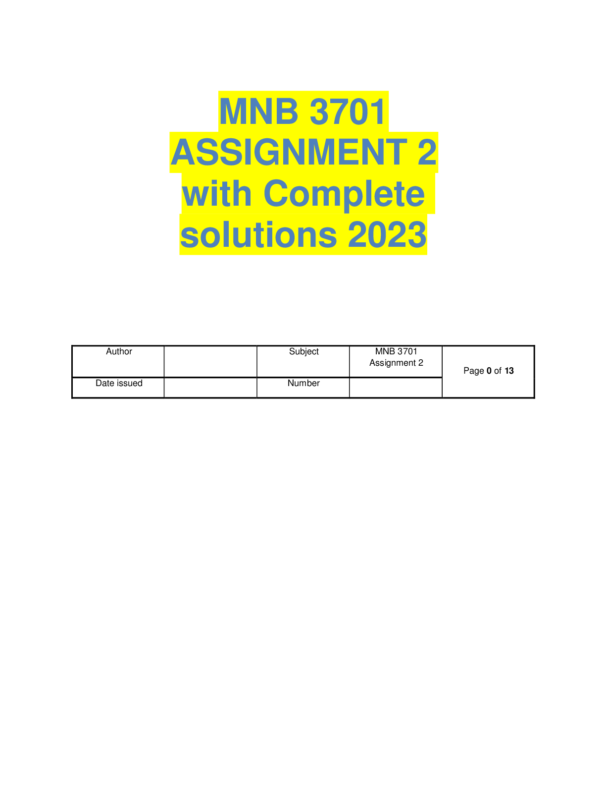 MNB3701 ASSIGNMENTs with Complete solutions 2023... [Show More]