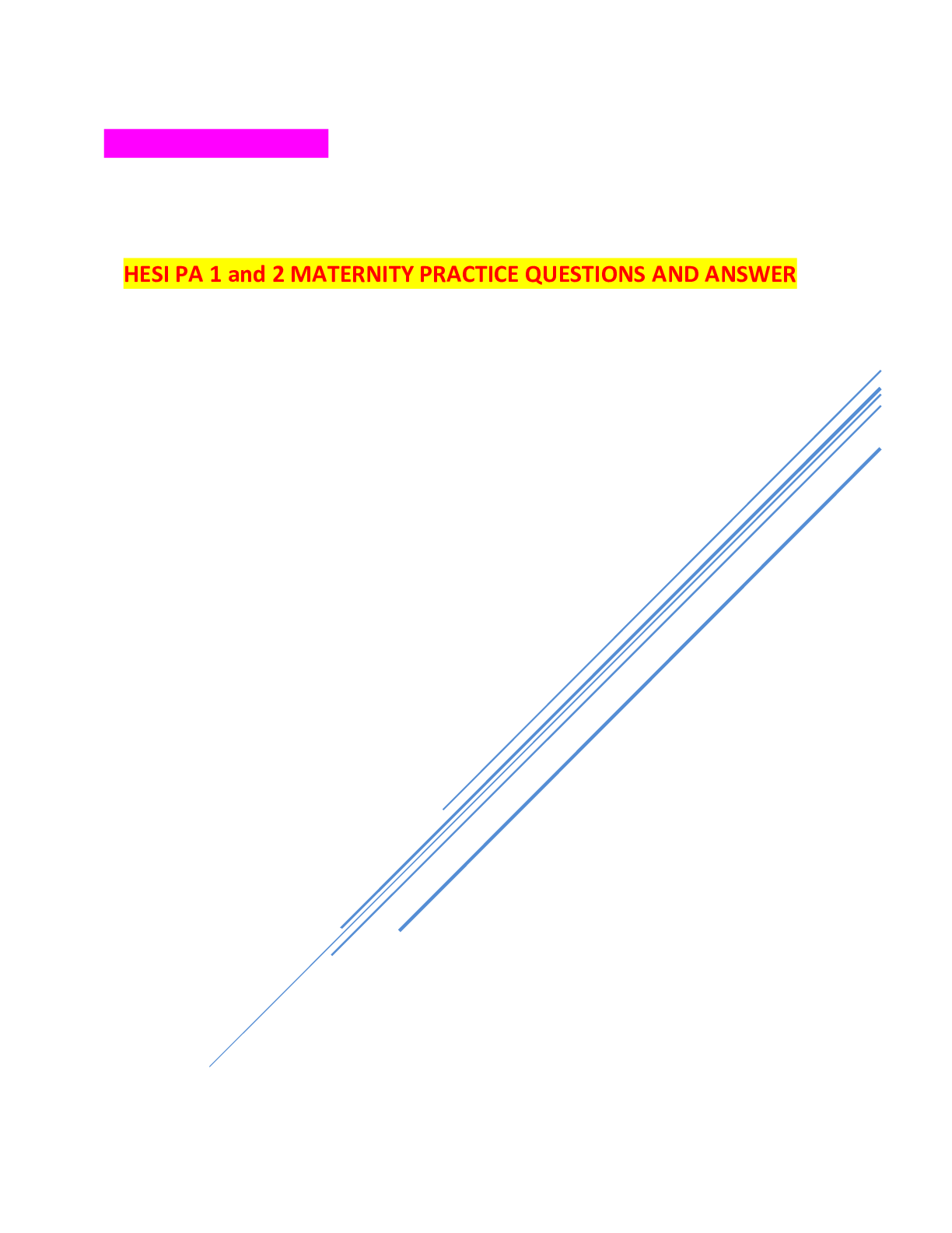 Health Care> EXAM > HESI PA 1 and 2 MATERNITY PRACTICE QUESTIONS AND ANSWER (All)