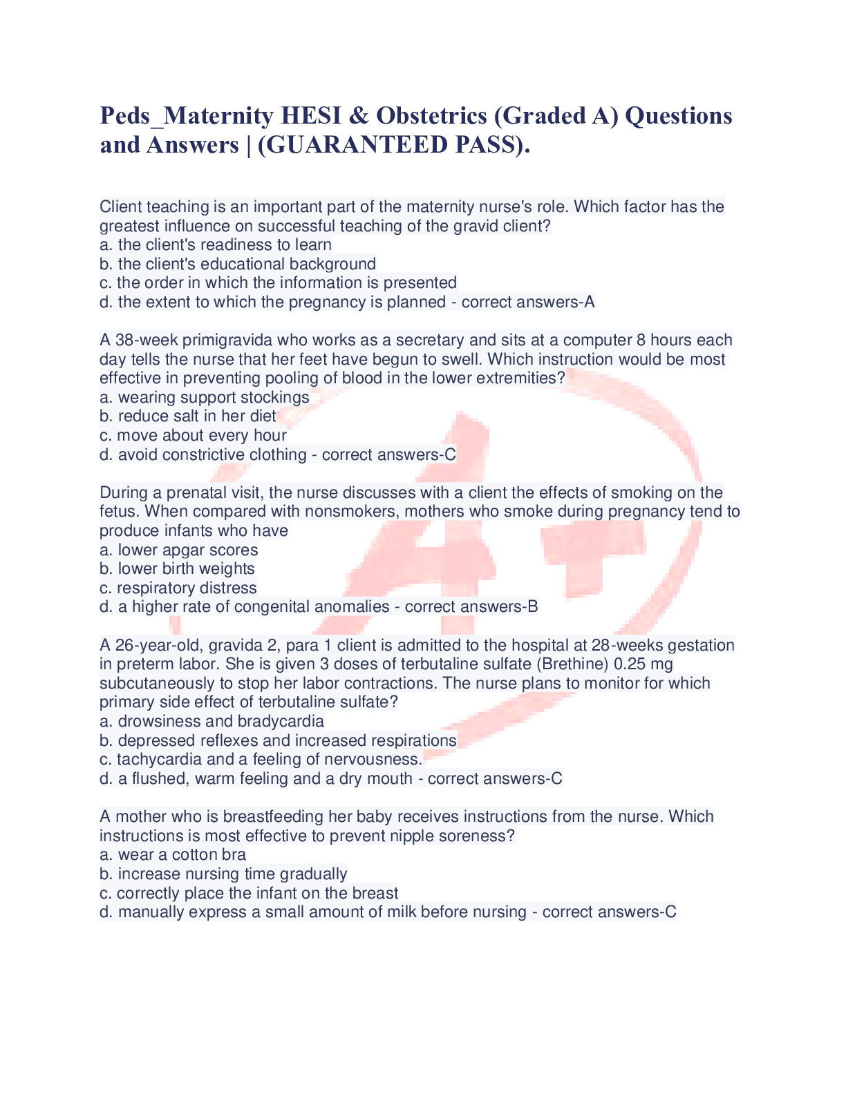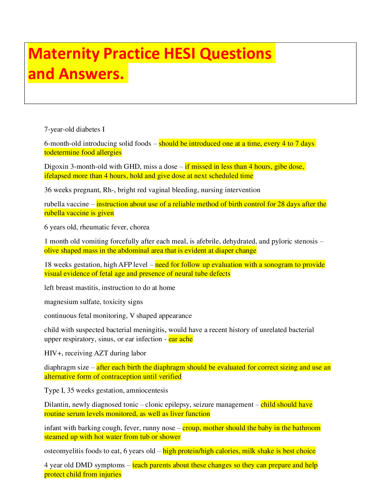 Health Care> EXAM > Maternity Practice HESI Questions and Answers. (All)