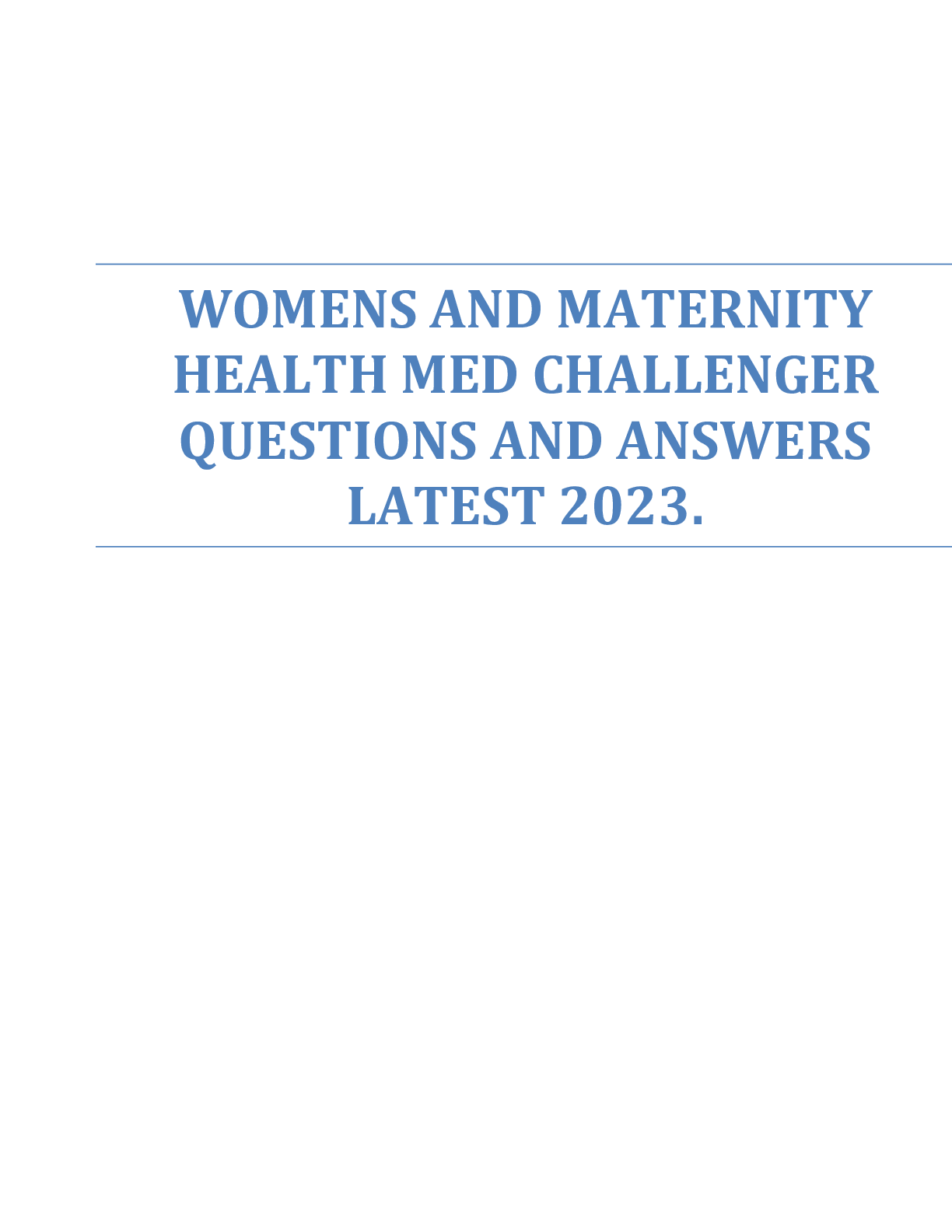 WOMENS AND MATERNITY HEALTH MED CHALLENGER QUESTIONS AND ANSWERS LATEST 2023.