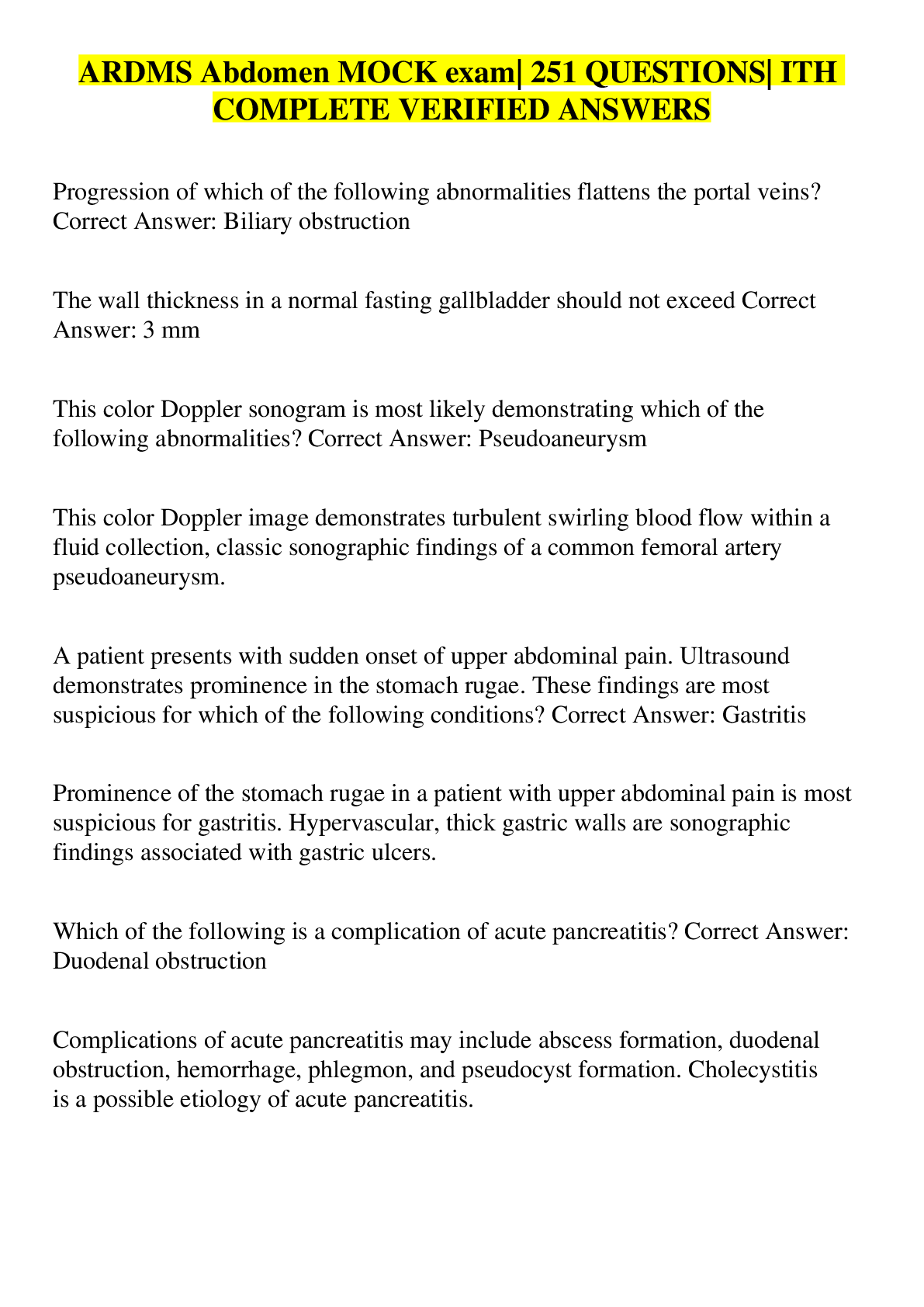 *NURSING> EXAM > Abdomen ARDMS Mock Exam With Verified Answers Graded a+ (All)