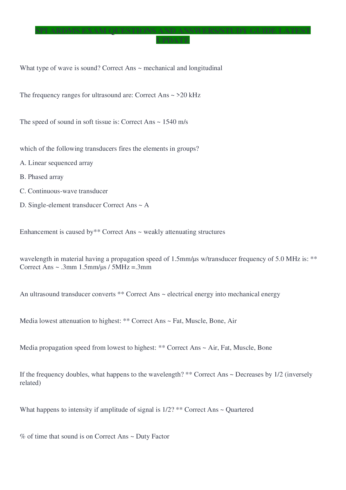 *NURSING> EXAM > SPI ARDMS EXAM QUESTIONS AND ANSWERS/STUDY GUIDE LATEST UPDATE (All)