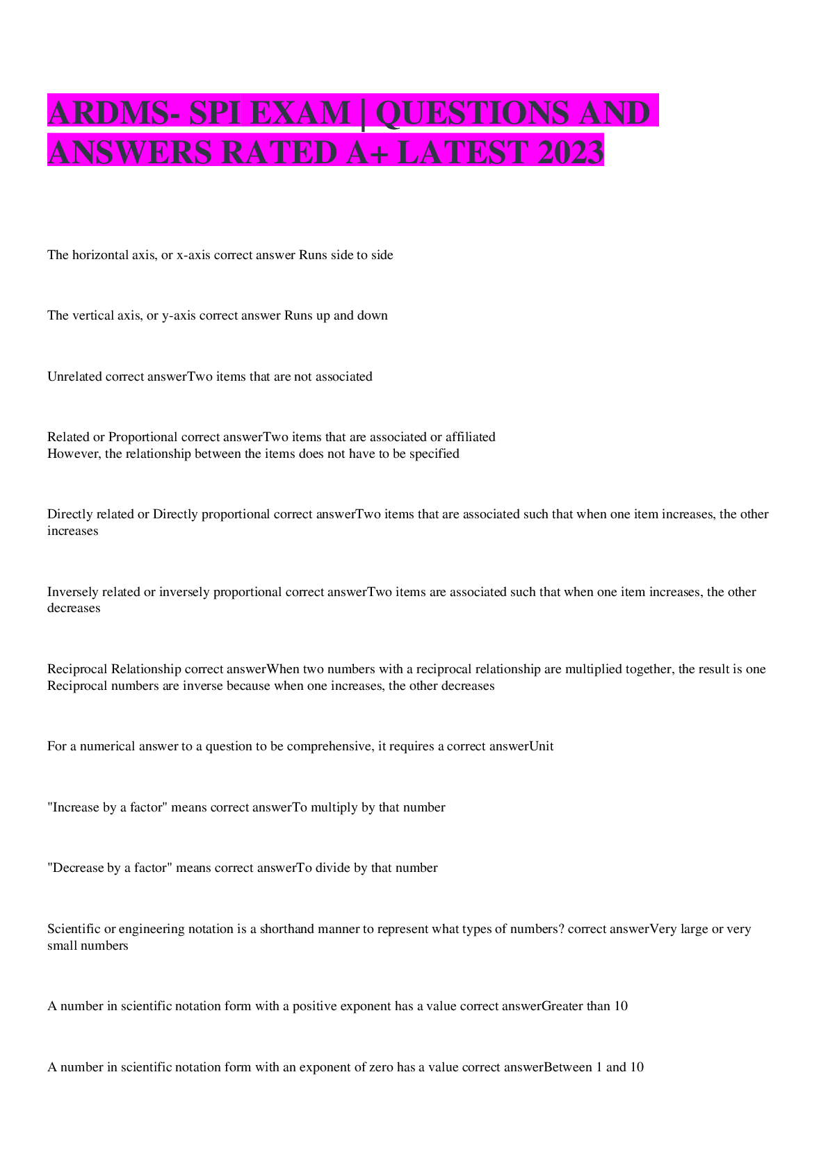 *NURSING> EXAM > ARDMS- SPI EXAM | QUESTIONS AND ANSWERS RATED A+ LATEST 2023 (All)