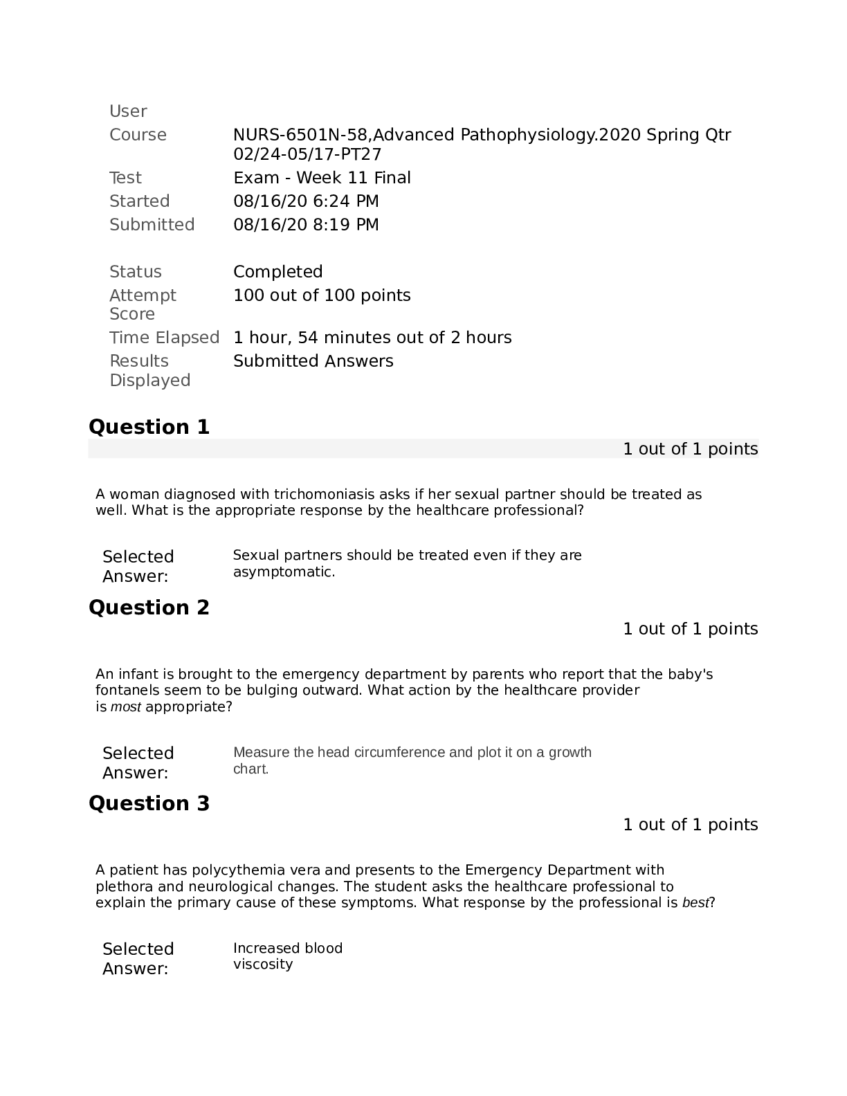 NURS 6501N Final Exam 1 (August 2020 - 100 out of 100)