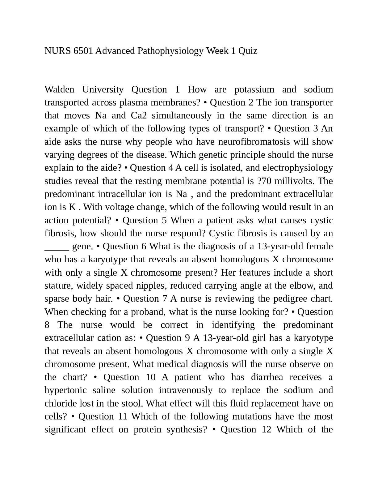 NURS 6501 week 1 quiz , Week 2, Week 3, Week 4, Week 5, Week 6, Week7,Week 8 Advanced patho