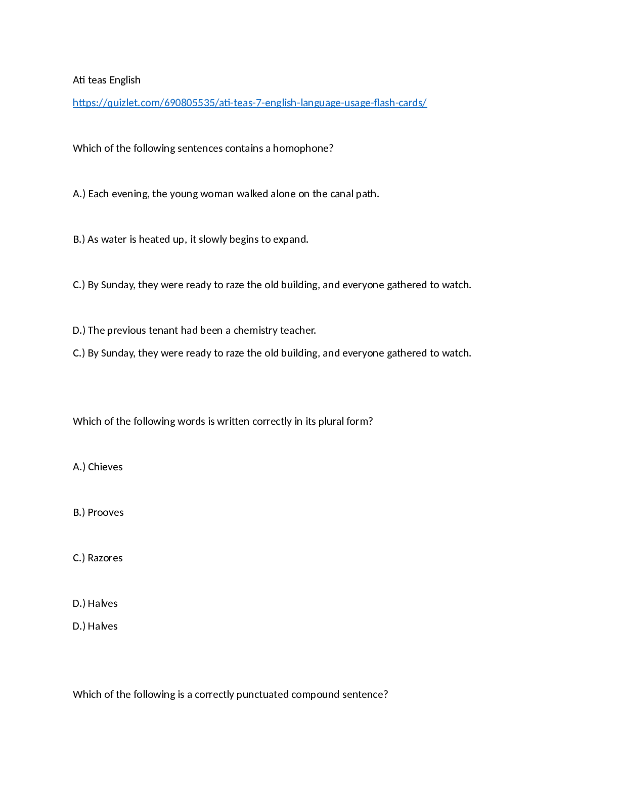 ATI TEAS 7 - ENGLISH & LANGUAGE USAGE Q&A