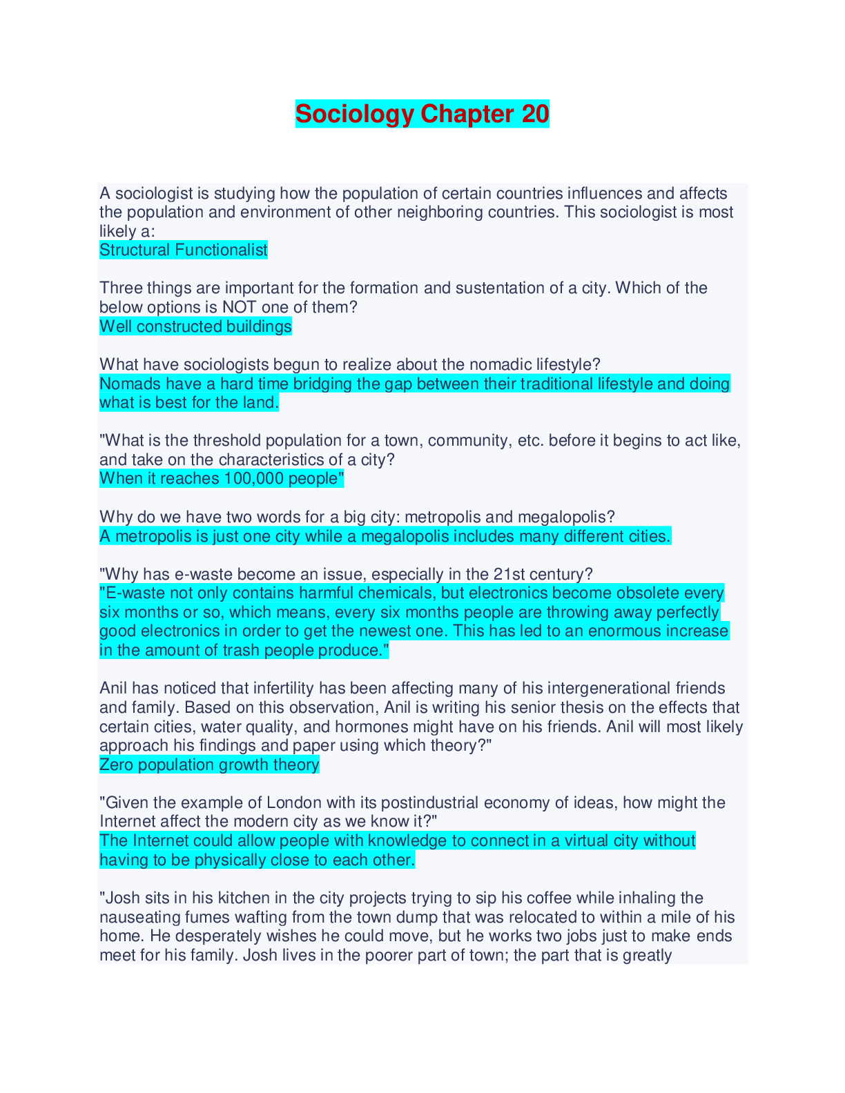 Sociology> EXAM > Sociology Chapter 20 - Questions and Answers (All)