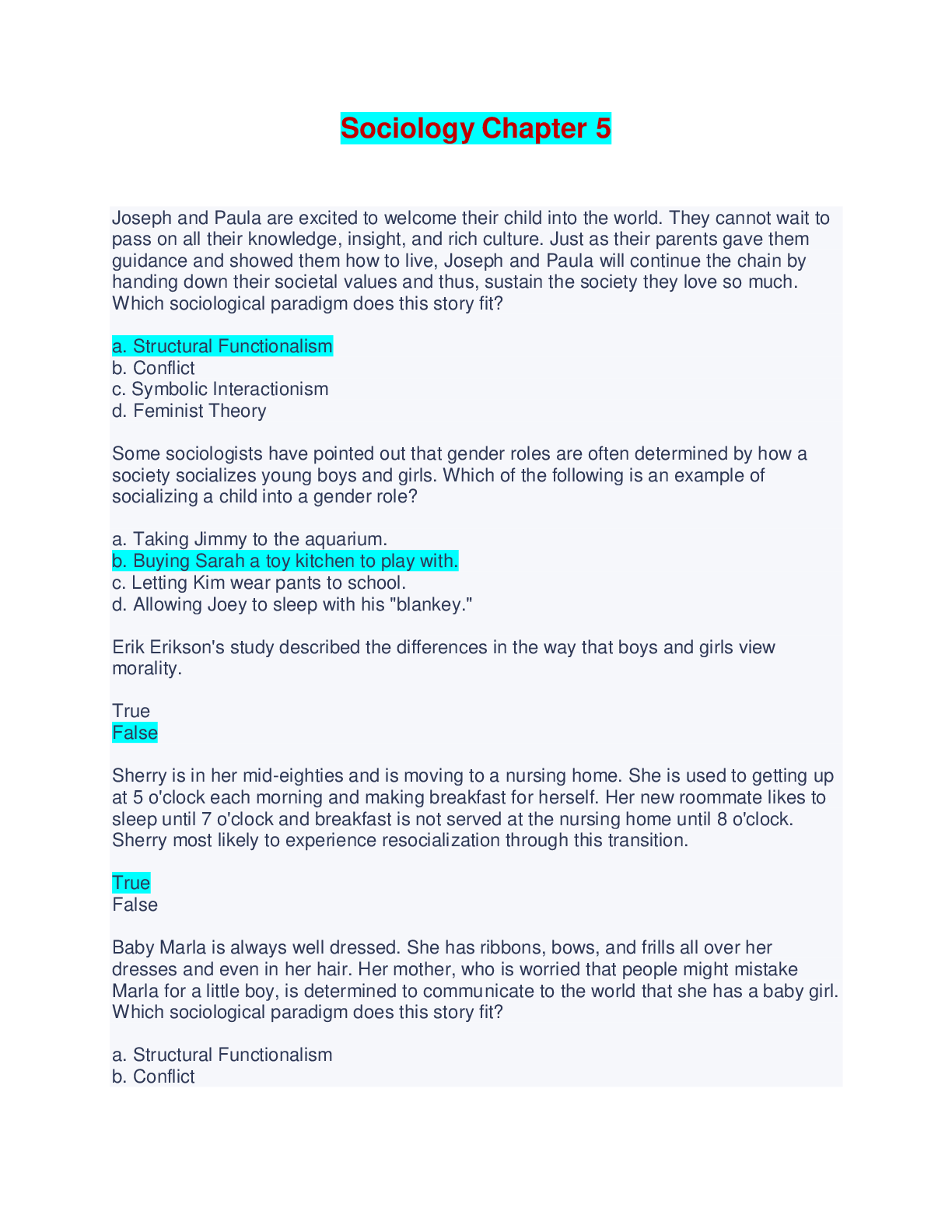 Sociology Chapter 5 - Questions and Answers Joseph and Paula are excited to welcome their child into the world. They cannot wait to pass on all their knowledge, insight, and rich culture. Just as th...
