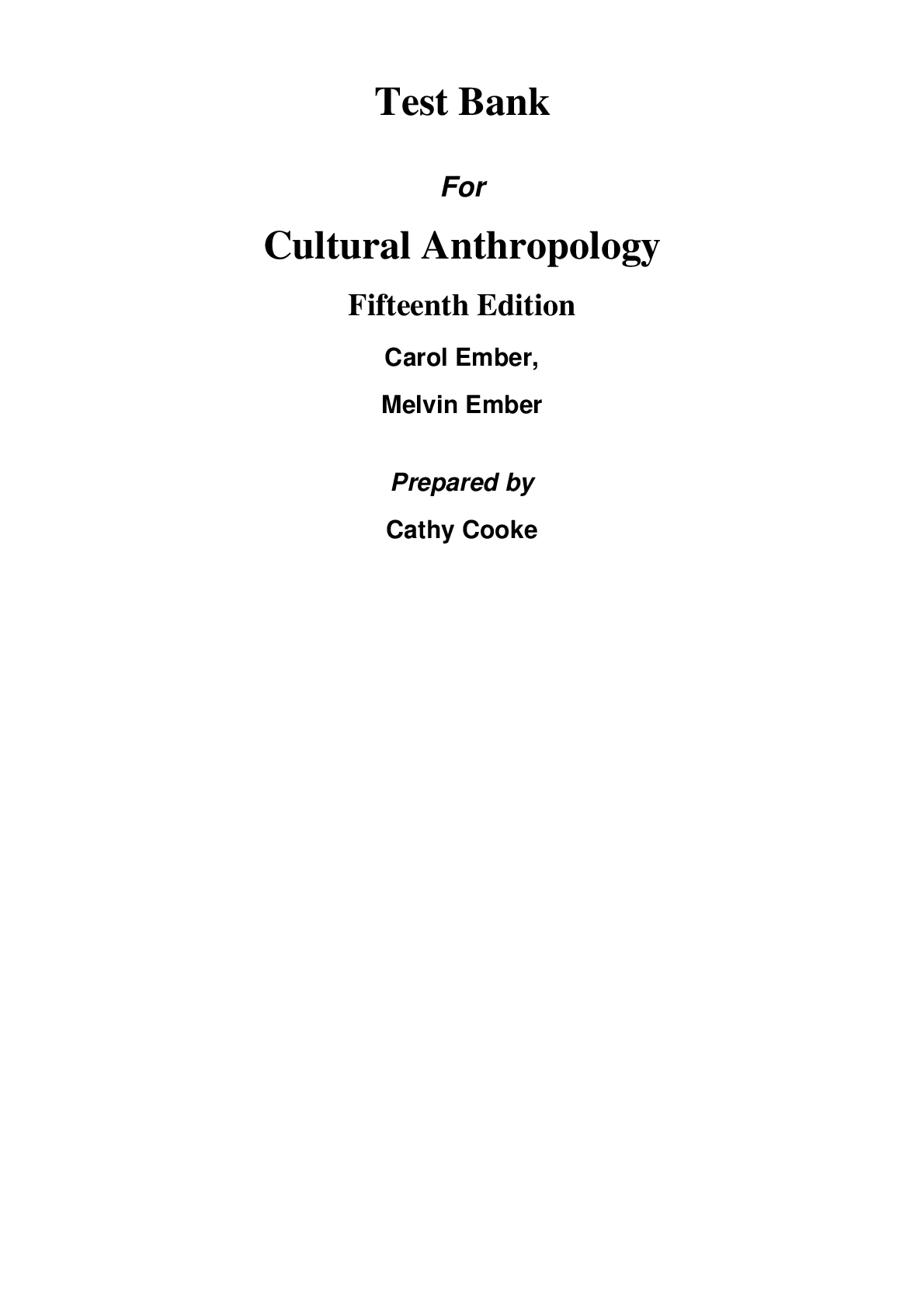 Anthropology > TEST BANKS > Test Bank for Cultural Anthropology 15th Edition by Carol Ember (All Chapters, 100% Original Verified, A+ Grade) (All)