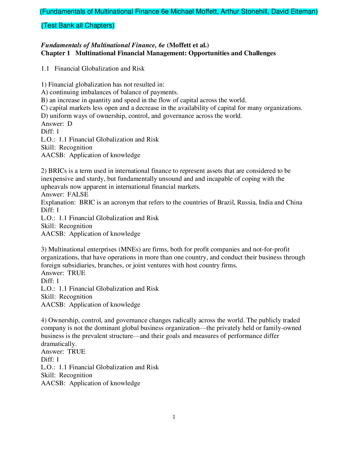 Finance > TEST BANKS > Fundamentals of Multinational Finance 6e Michael Moffett, Arthur Stonehill, David Eiteman (Test Bank) (All)