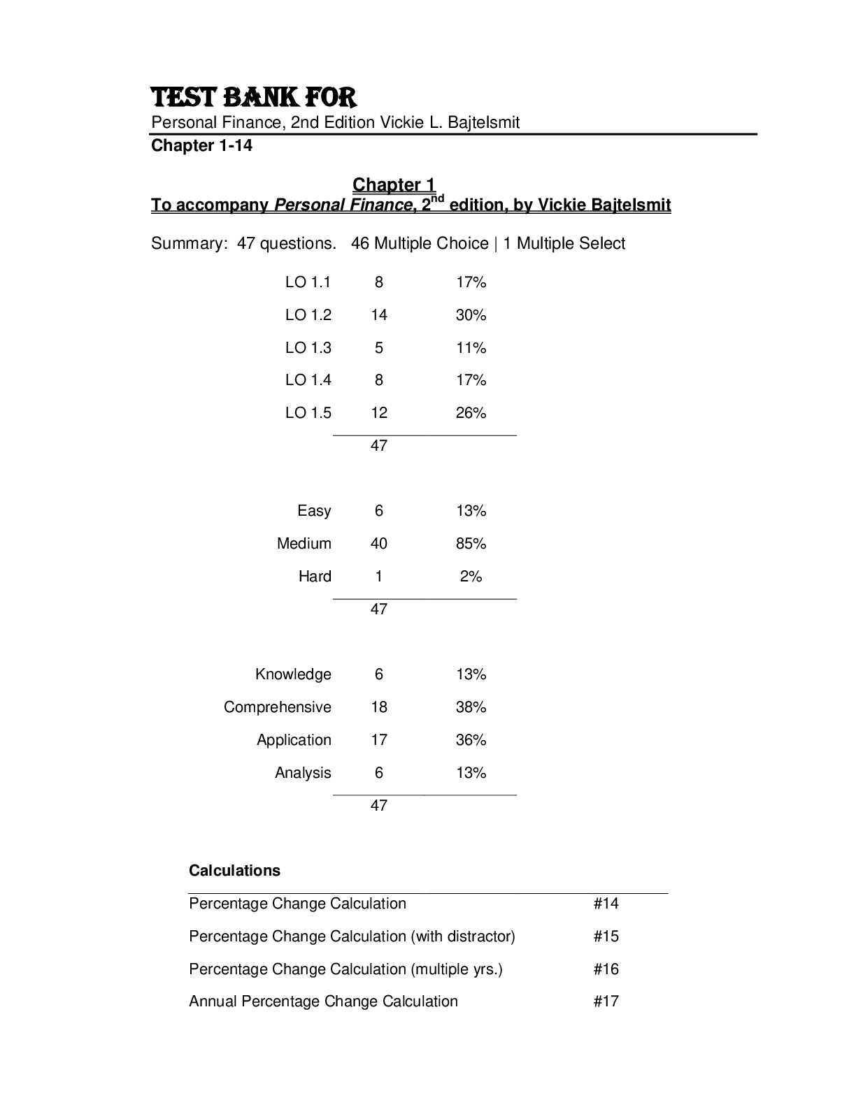 Finance > TEST BANKS > Test Bank for Personal Finance, 2nd Edition by Vickie L. Bajtelsmit (All)