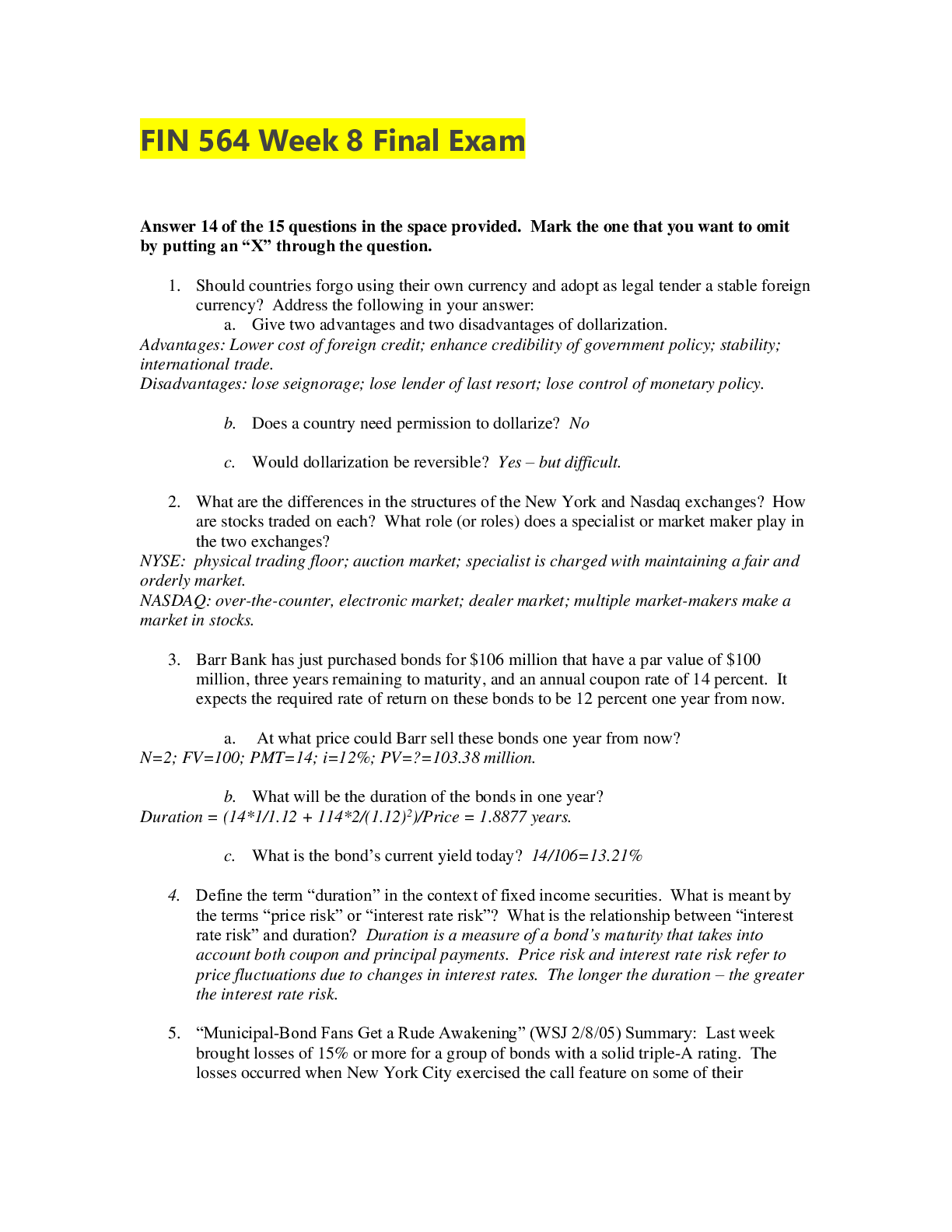 Finance > EXAM > FIN 564 Week 8 Final Exam, already graded A, (Latest 2020) (All)