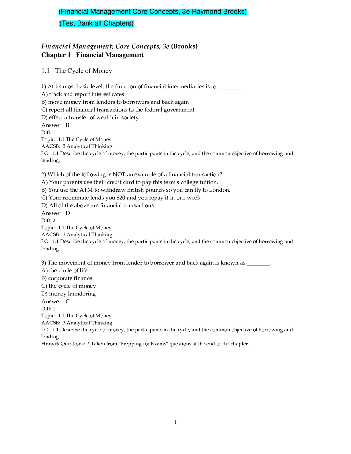 Finance > TEST BANKS > Financial Management Core Concepts, 3e Raymond Brooks (Test Bank) (All)