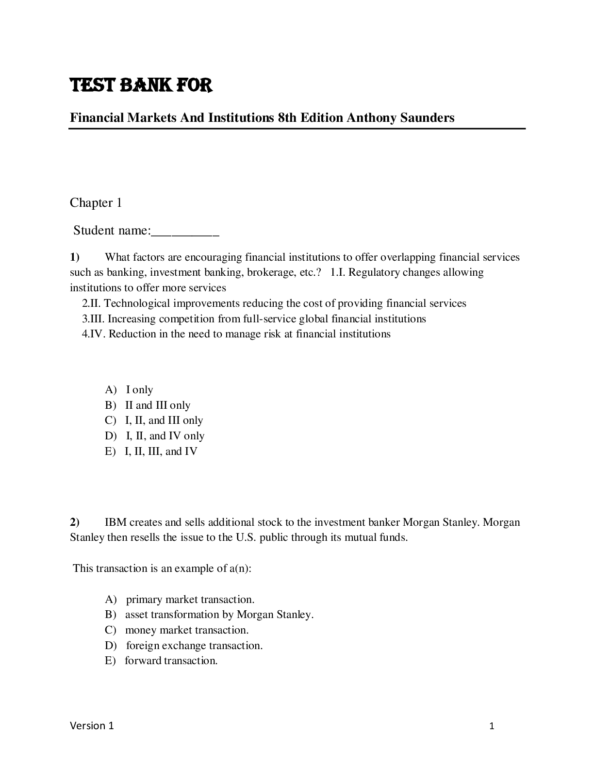Finance > TEST BANKS > TEST BANK FOR Financial Markets And Institutions 8th Edition Anthony Saunders A+ (All)