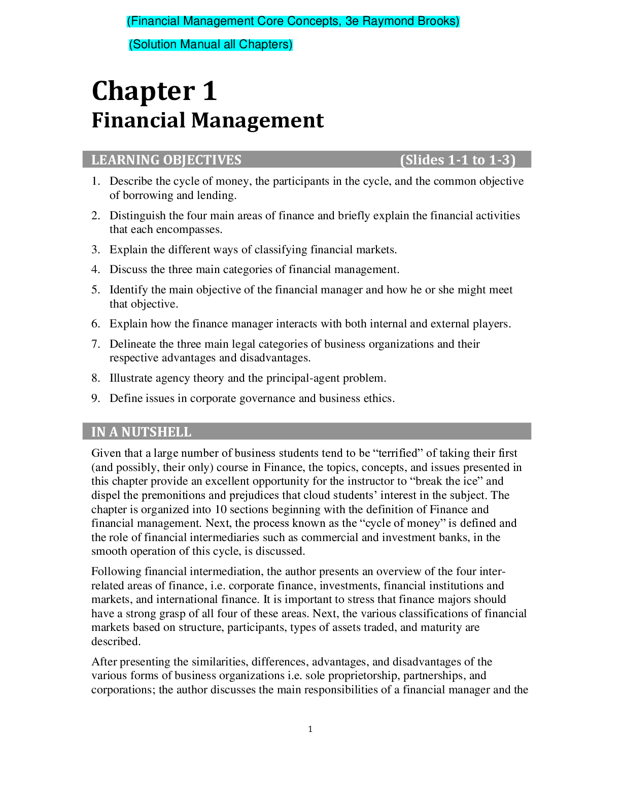 Finance > SOLUTIONS MANUAL > Financial Management Core Concepts, 3e Raymond Brooks (Solution Manual) (All)