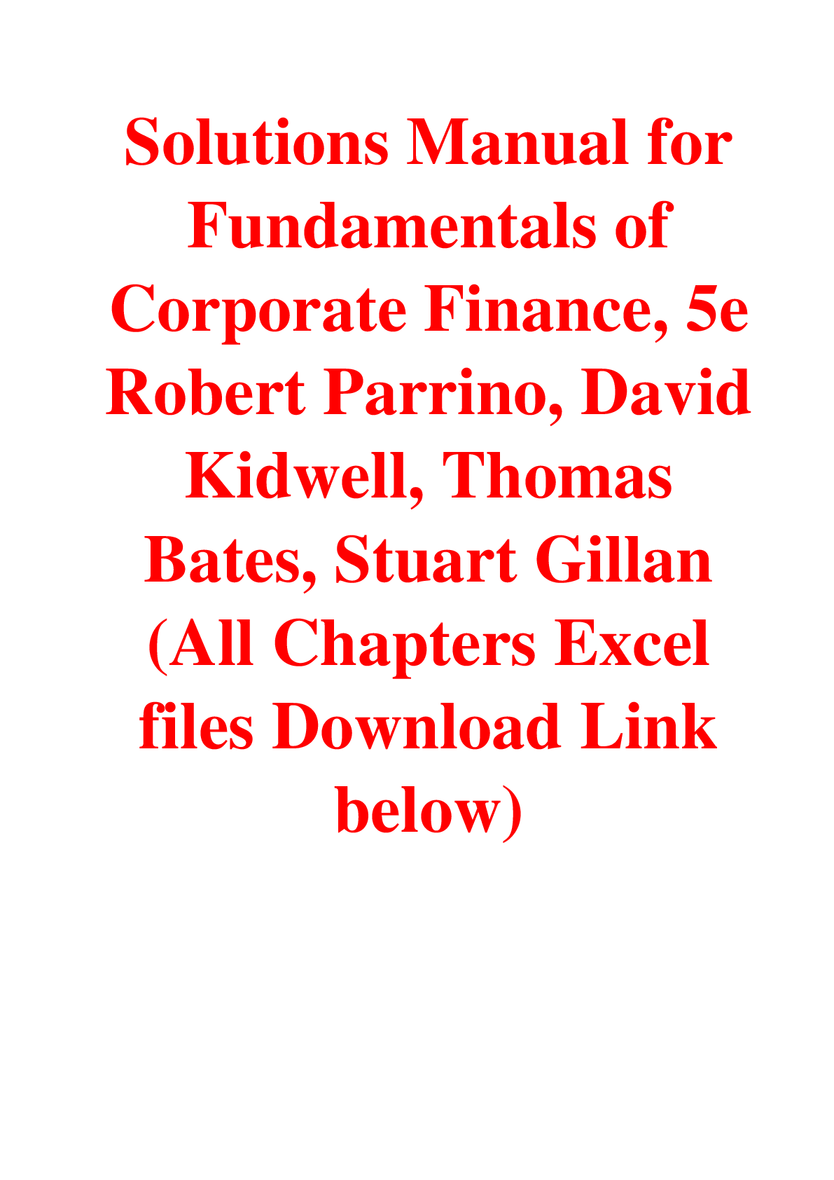 Finance > SOLUTIONS MANUAL > Solutions Manual Fundamentals of Corporate Finance 5th Edition by Robert Parrino David Kidwell Thoma A+ (All)