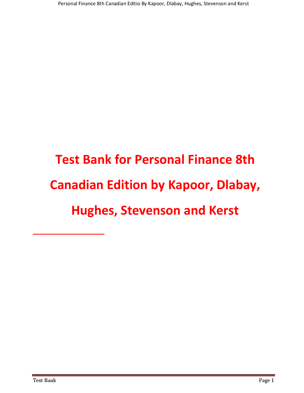 Finance > TEST BANKS > Test Bank for Personal Finance 8th Canadian Edition by Kapoor, Dlabay, Hughes, Stevenson and Kerst (All)