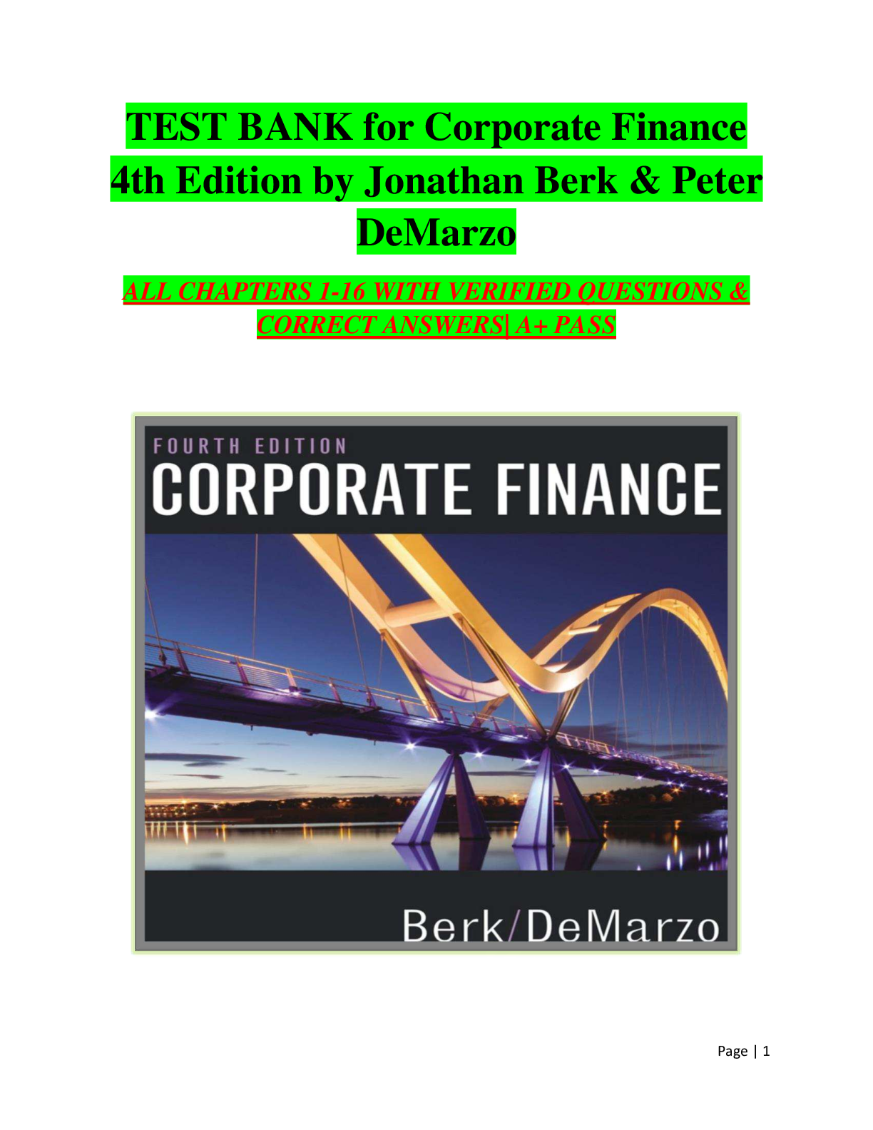 Finance > TEST BANKS > TEST BANK for Corporate Finance 4th Edition by Jonathan Berk & Peter DeMarzo ALL CHAPTERS 1 -16 WITH VERIFIED QUESTIONS & CORRECT ANSWERS| A+ PASS (All)