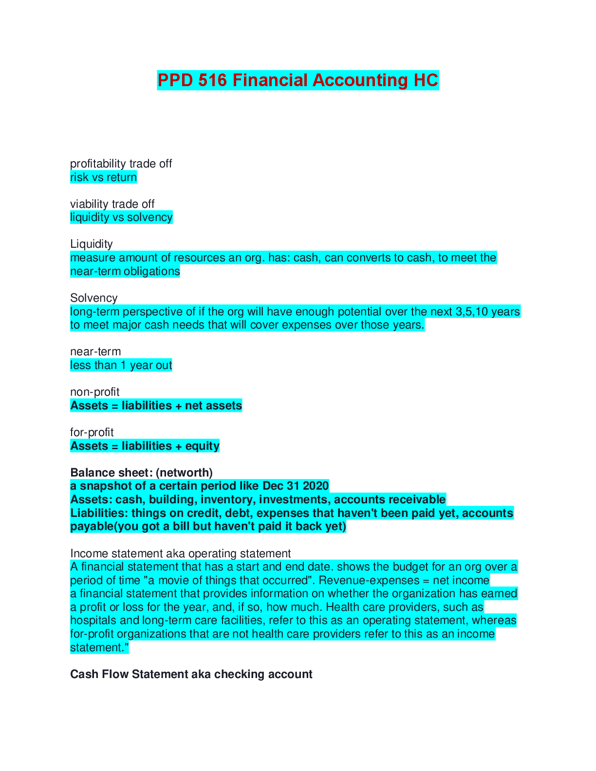 Finance > EXAM > PPD 516 Financial Accounting HC Exam | Verified with 100% Correct Answers (All)