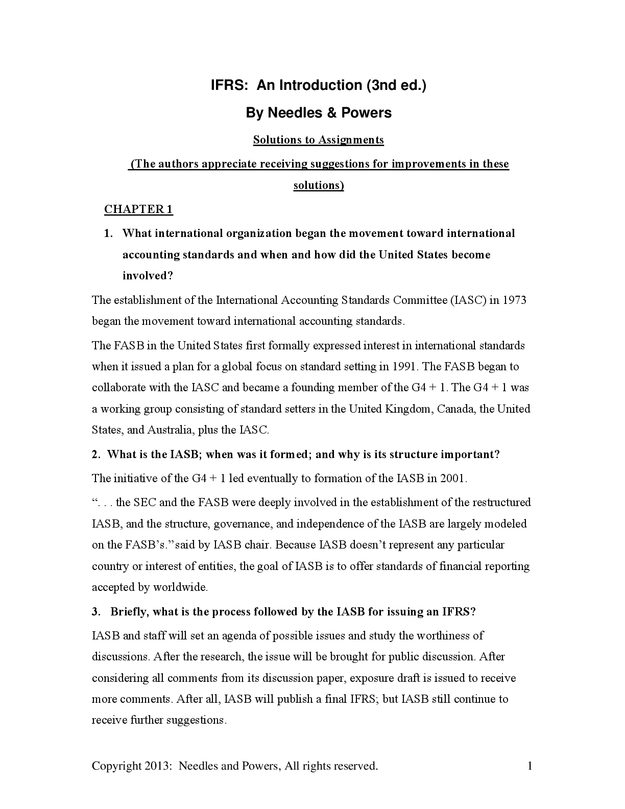 Finance > SOLUTIONS MANUAL > Solutions Manual For A Guide to International Financial Reporting Standards 3rd Edition By Belverd Needles Marian Powers (All)