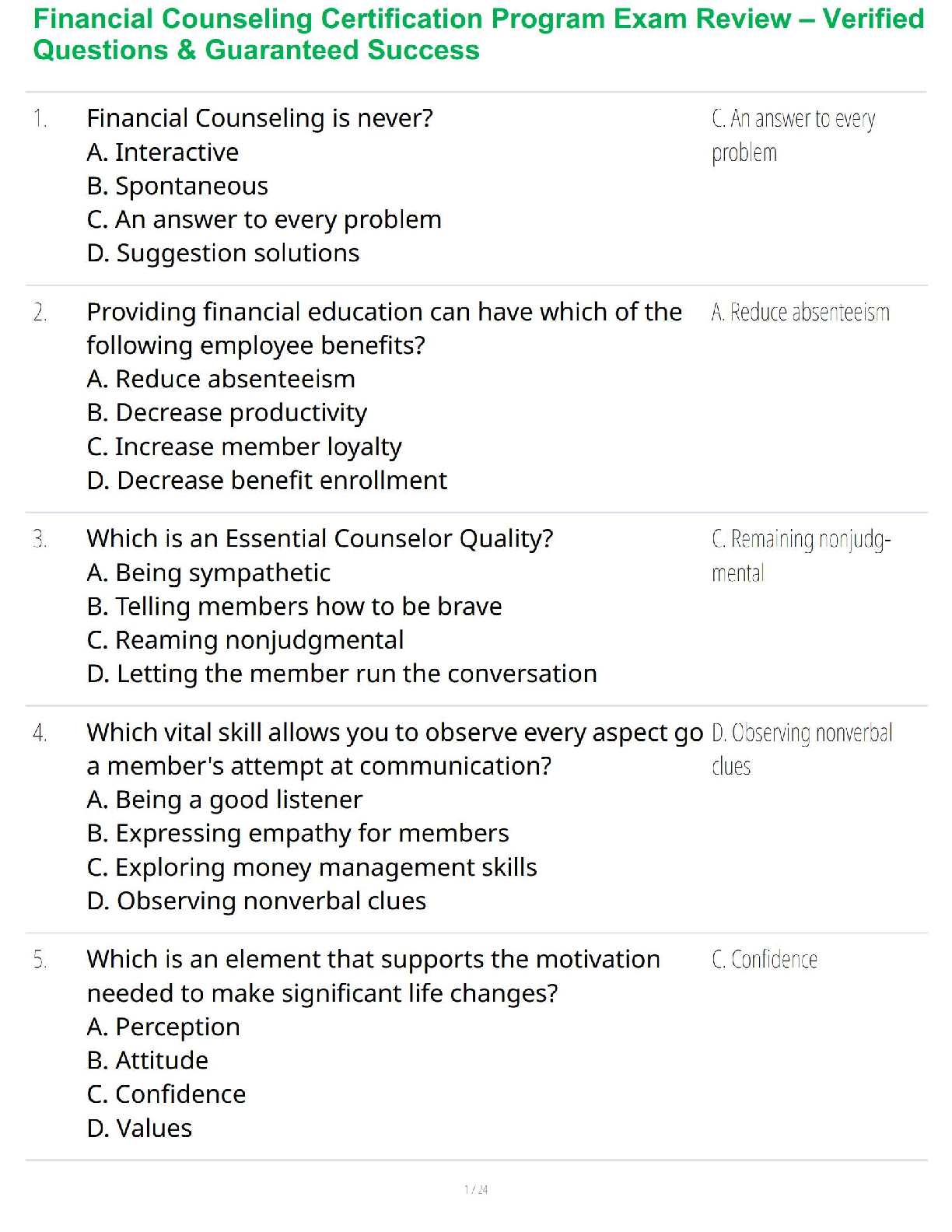 Finance > QUESTIONS & ANSWERS > Financial Counseling Certification Program Exam Review – Verified Questions & Guaranteed Success (All)