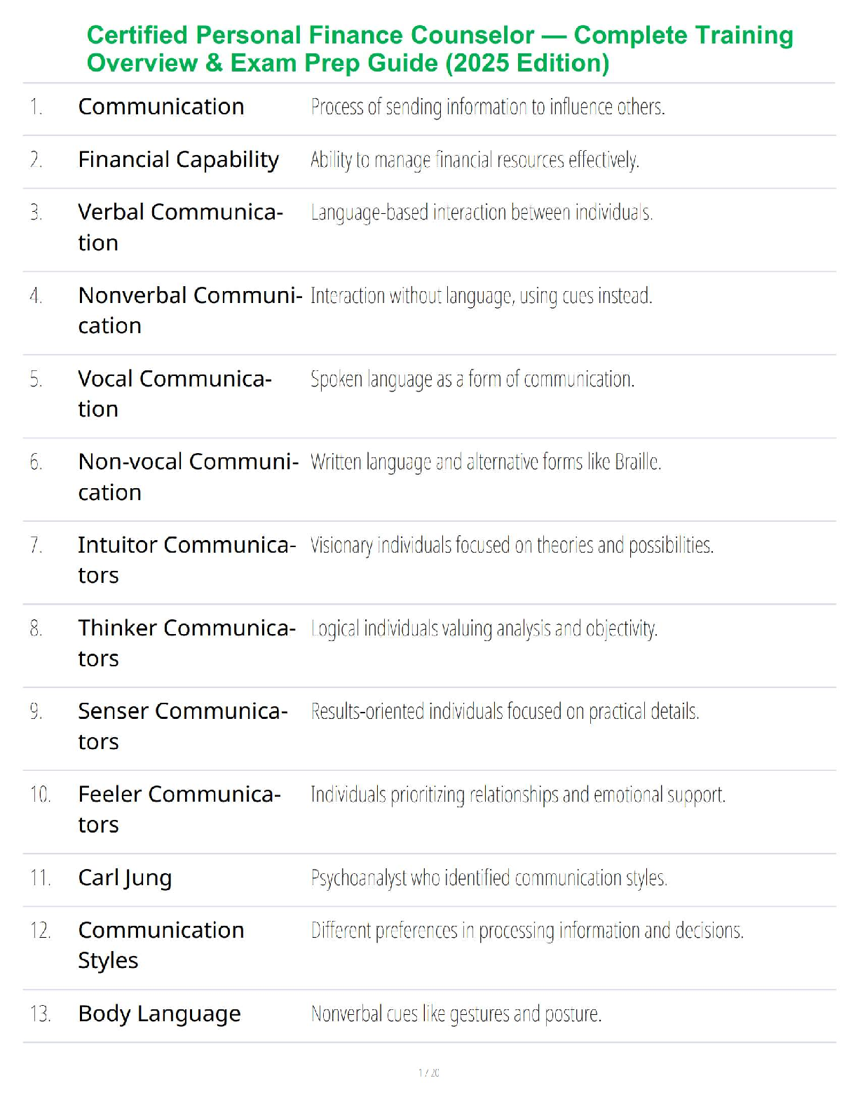 Finance > STUDY GUIDE > Certified Personal Finance Counselor — Complete Training Overview & Exam Prep Guide (2025 Edition) (All)