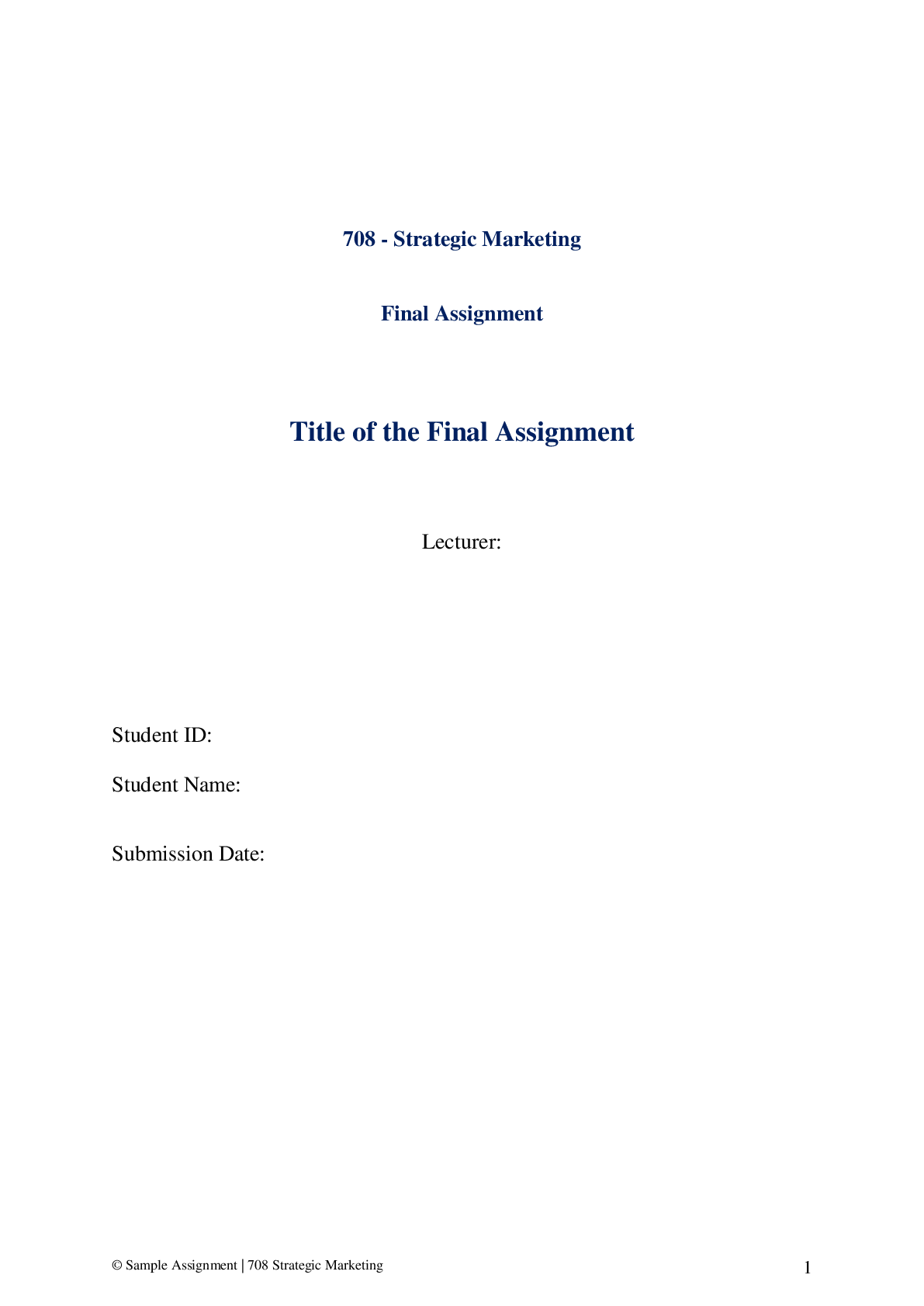 Finance > STUDY GUIDE > 708 - Strategic Marketing Final Assignment Title of the Final Assignment FINANCE (All)