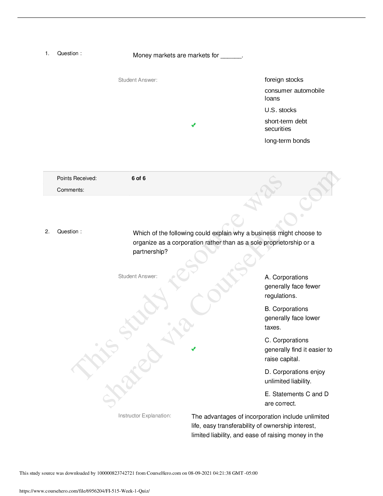 Finance > EXAM > FIN 515Week 8 final exam 515 fall 2021 (All)