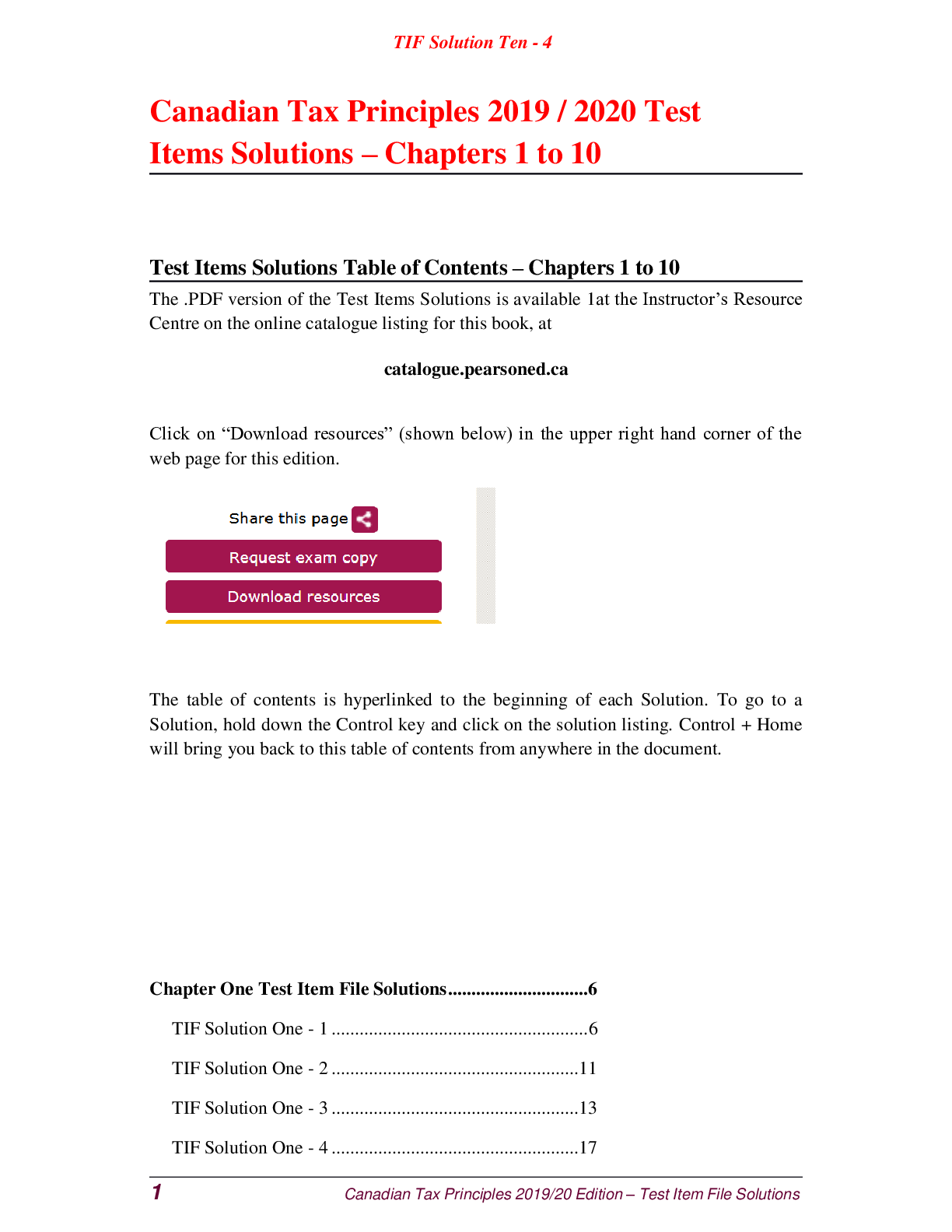 Finance > SOLUTIONS MANUAL > Solutions Manual Canadian Tax Principles 2019 / 2020 Test Items Solutions – Chapters 1 to 10 (All)
