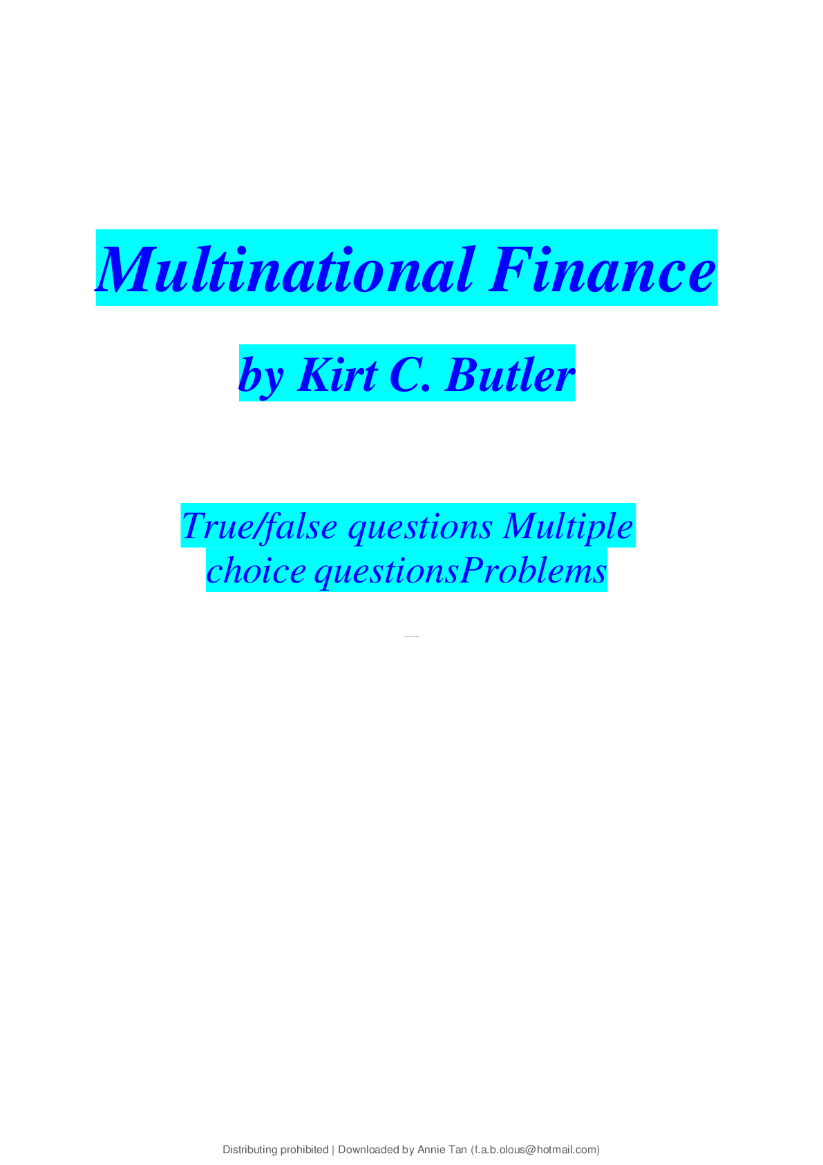 Finance > TEST BANKS > Test Bank True/false questions Multiple choice questions Problems to accompany Multinational Finance by Kirt C. Butler Third Edition (All)