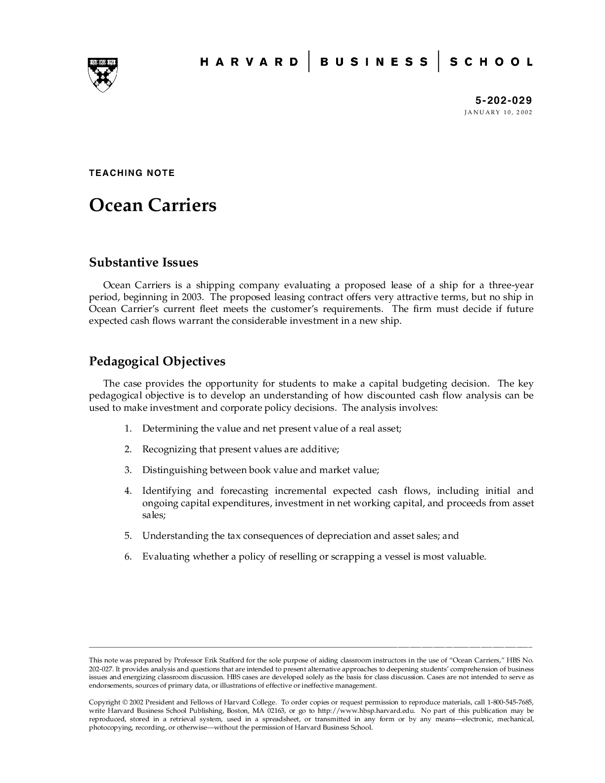 Finance > CASE STUDY > Case Solutions/ Notes for Ocean Carriers, by Erik Stafford, Kathleen Luchs, & Angela Chao (All)