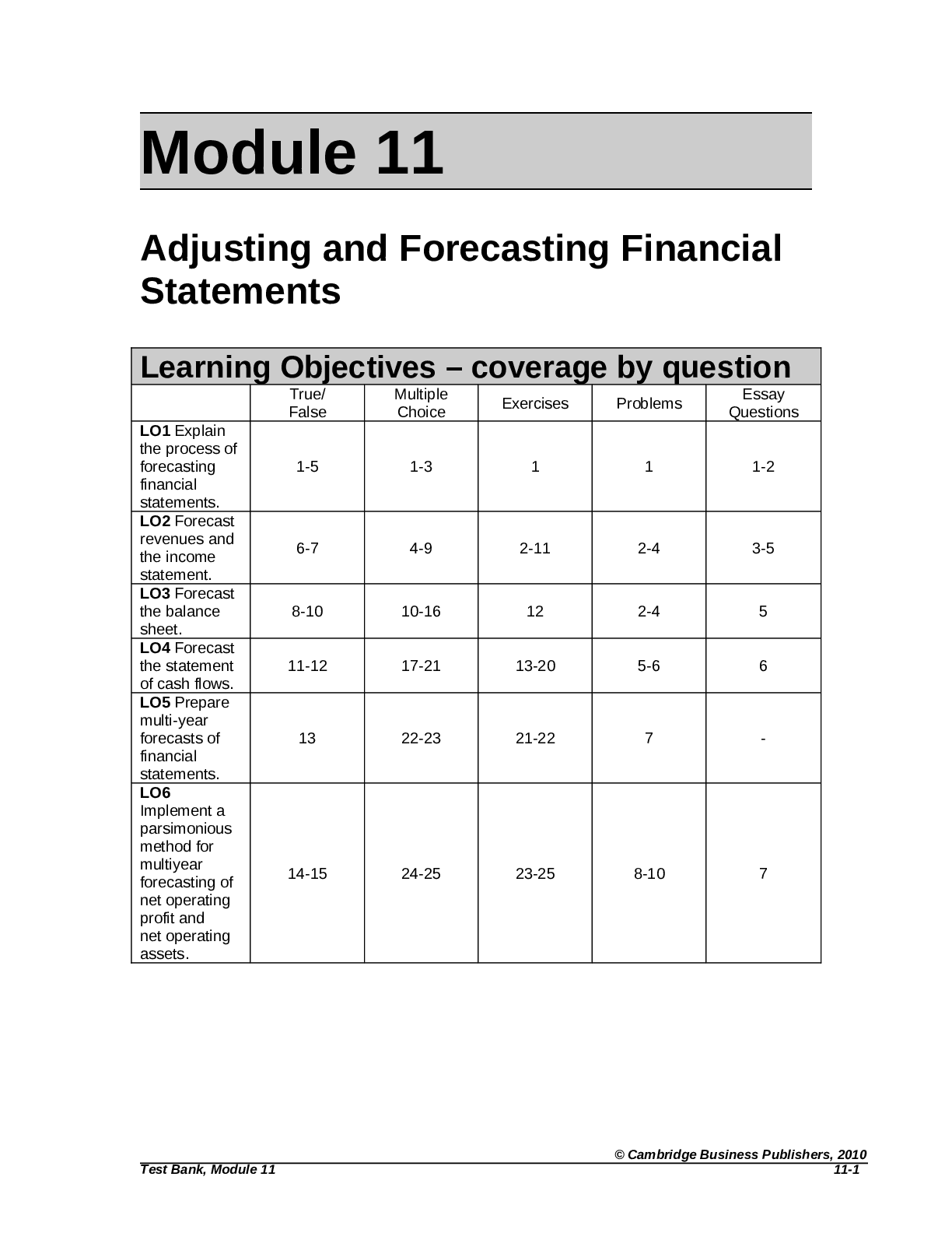 Finance > QUESTIONS & ANSWERS > FAMBA4e TestBank Mod11_09 10 09. Module 11. Adjusting and Forecasting Financial Statements. (All)