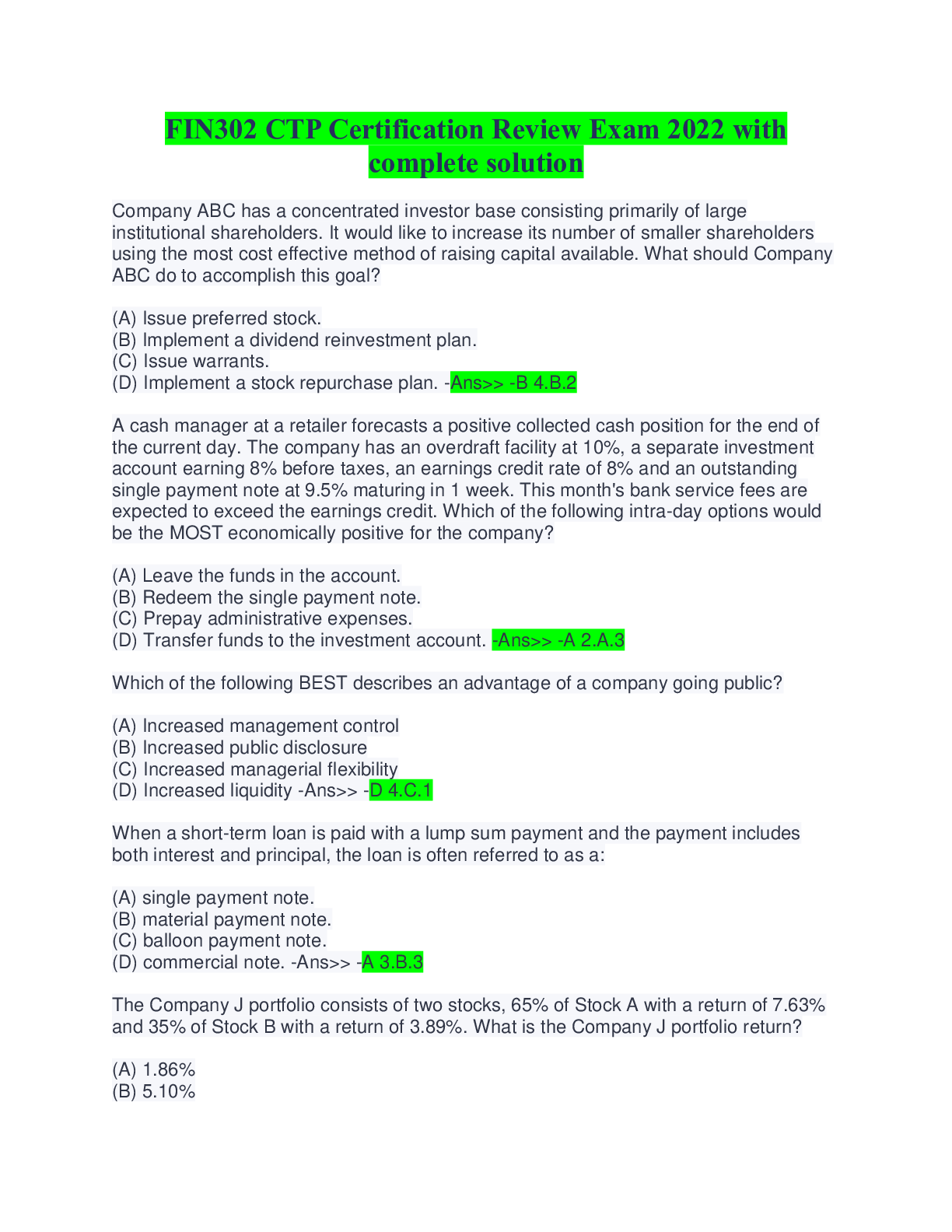 Finance > QUESTIONS & ANSWERS > FIN302 CTP Certification Review Exam 2022 with complete solution (All)