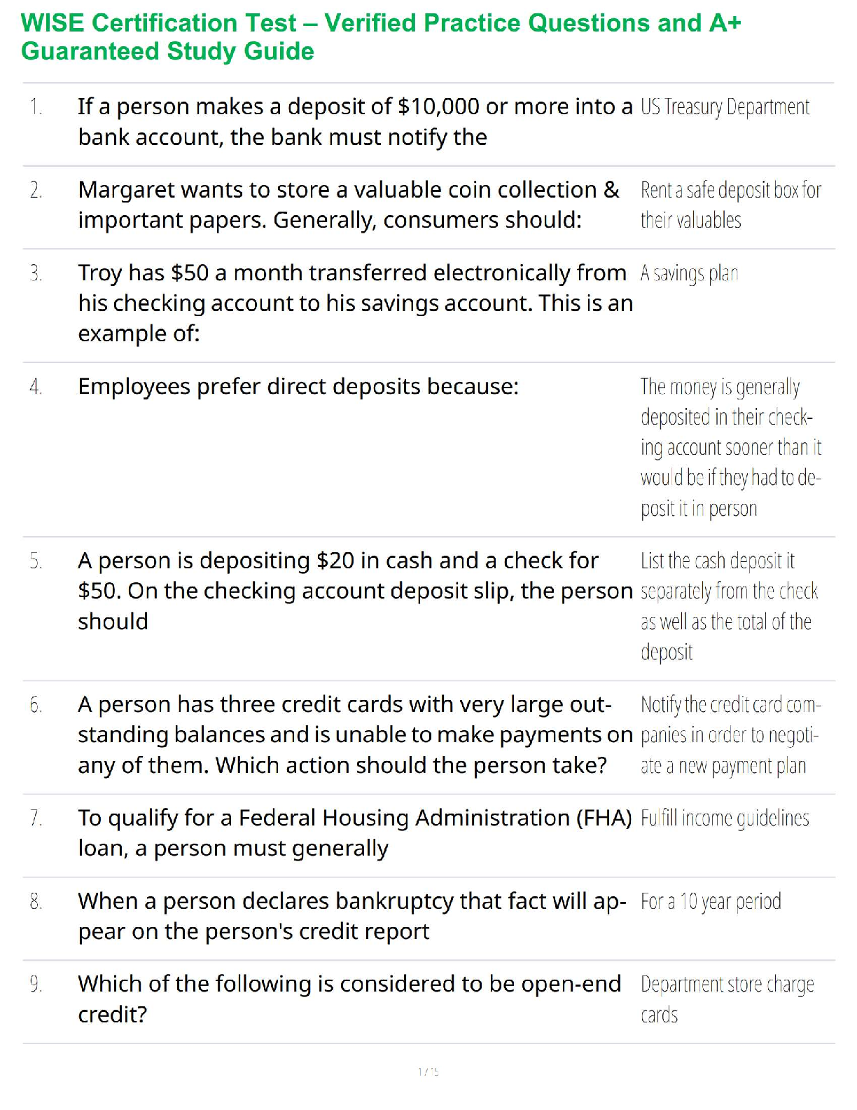 Finance > STUDY GUIDE > WISE Certification Test – Verified Practice Questions and A+ Guaranteed Study Guide (All)