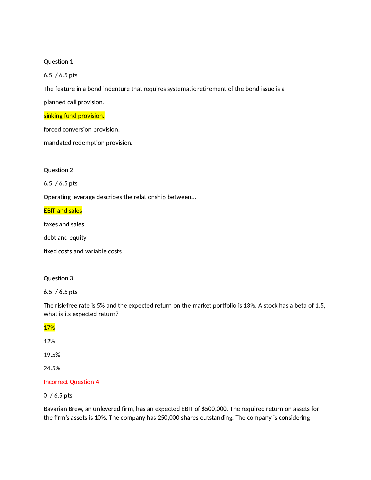 Finance > EXAM > Unit 4 Midterm Exam (Version 2) FI 360 Financial Management. Latest Update. (All)
