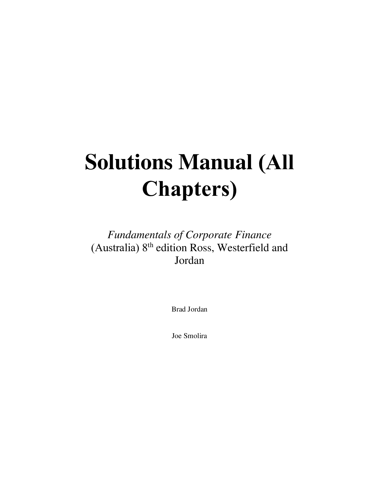 Finance > TEST BANKS > Fundamentals of Corporate Finance, 8e (Australia Edition) By Stephen Ross (Test Bank) (All)
