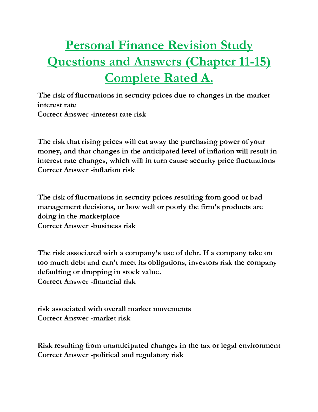 Finance > EXAM > Personal Finance Revision Study Questions and Answers (Chapter 11-15) Complete Rated A. (All)