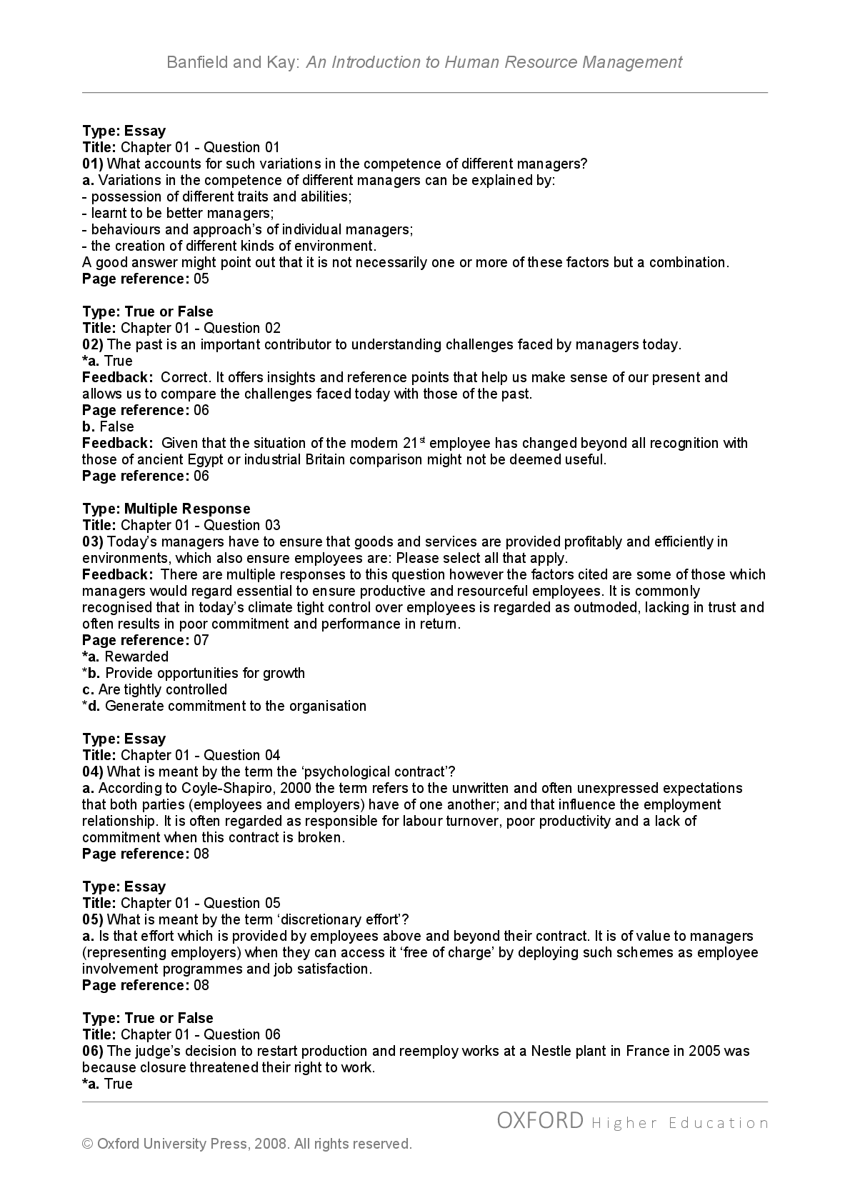 Human Resource Management > TEST BANKS > Test Bank For An Introduction to Human Resource Management 1Edition By Banfield Kay (All)